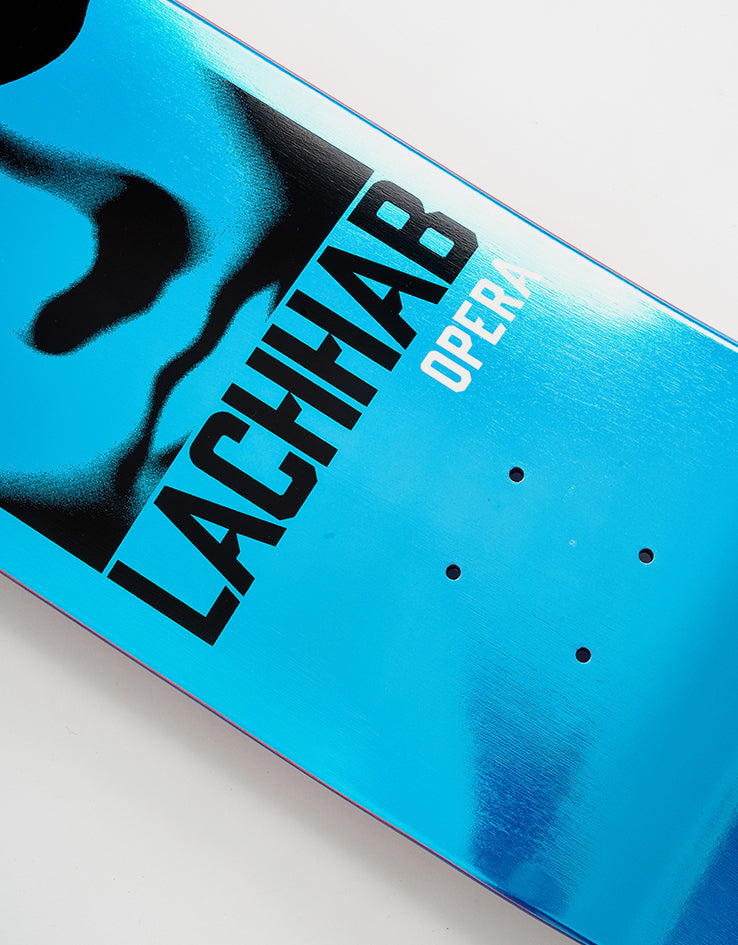 The Opera Nassim Serpent EX7 Skateboard Deck is a pro model for Nassim Lachhab coming in at 8.5" wide. The deck features a square graphic of the Opera mask on a blue foil background.