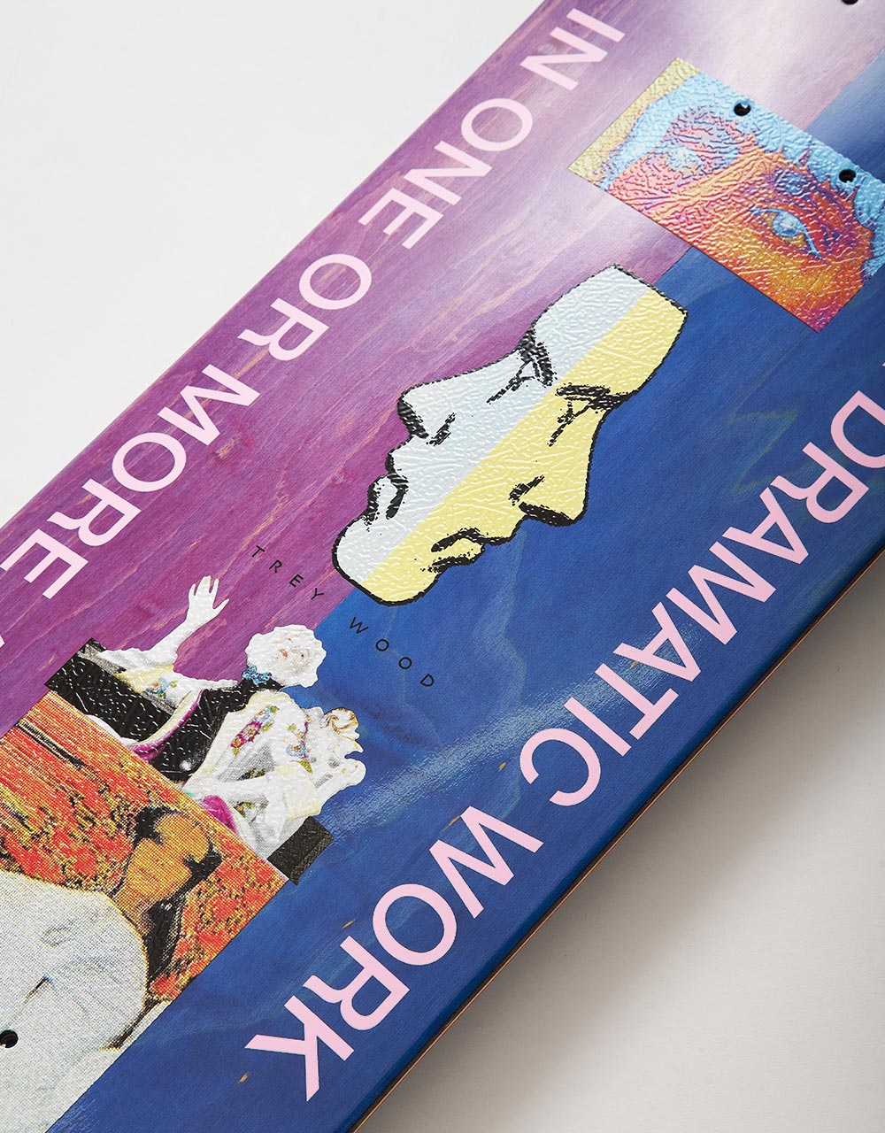 The Opera Wood Dramatic EX7 Skateboard Deck is a pro model for Trey Wood coming in at 8.25" wide. The deck features four embossed pieces of art down the centre of the board on a split veneer background.