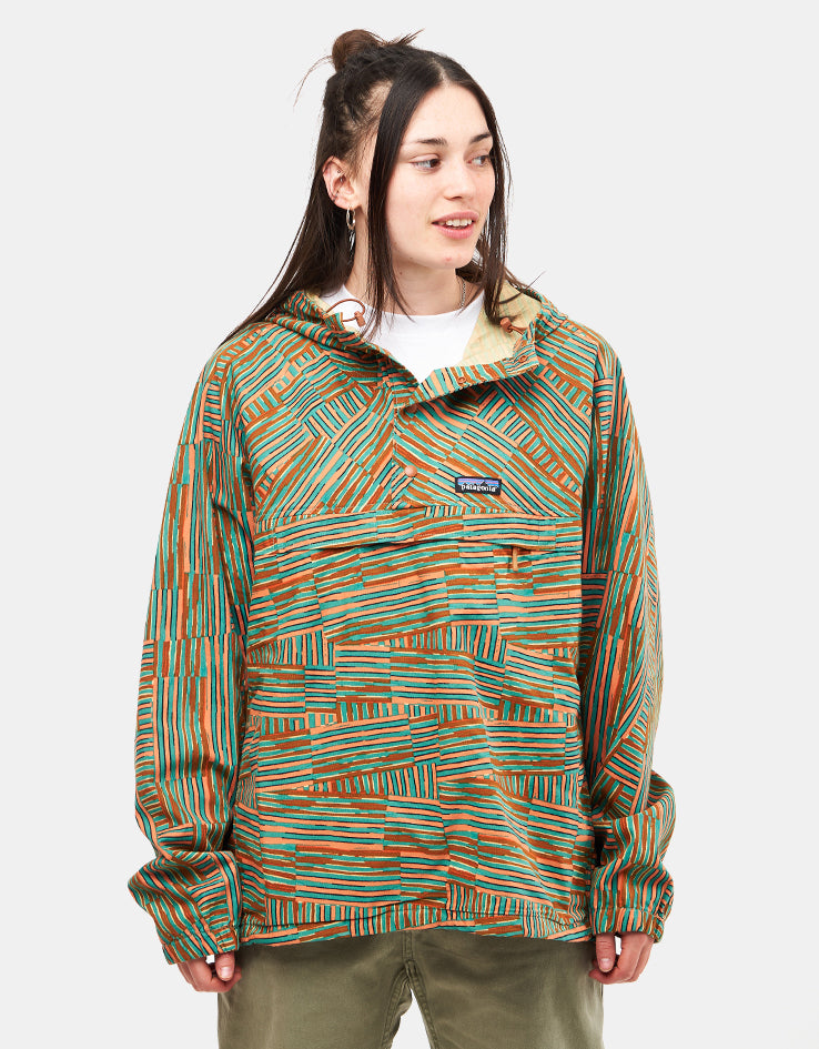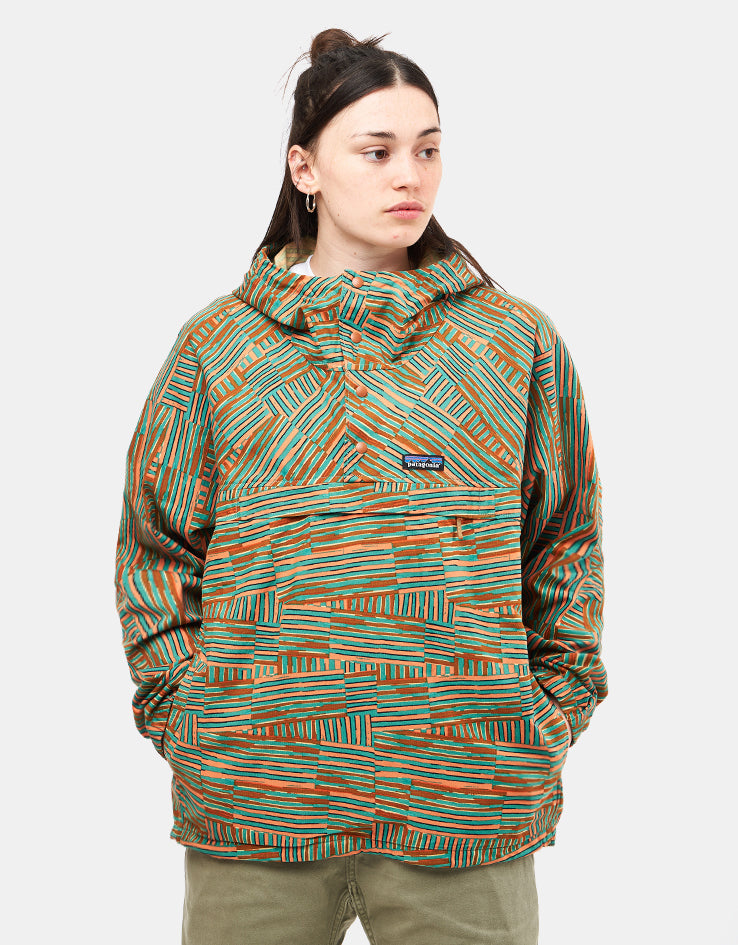 Upgrade your wardrobe with the Patagonia Funhoggers Anorak in Quilty Fitz: Heartleaf Green, featuring classic branding from this iconic brand. Composed of 100% cotton, styled in a relaxed fit with a quarter zip up closure.