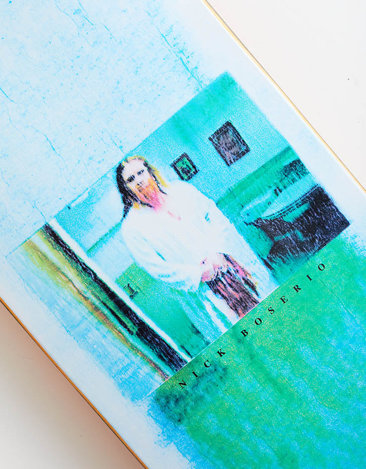 Polar Skate Co. bless us with another eclectic mix of hardware and tees for Fall '24. The Polar Dane Worker Skateboard Deck is a pro model for Nick Boserio coming in at 8.38" wide. The deck features artwork by Sirus F Gahan and features a distorted image of a jesus stood in a waiting room. The background is a cloudy and cracked texture.