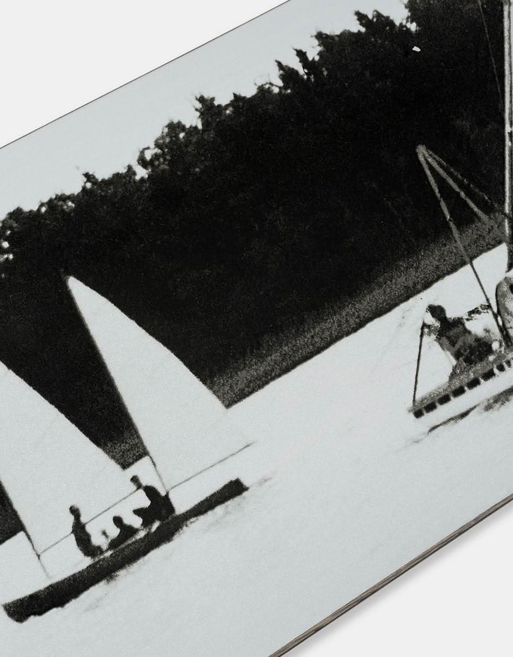 The Gonzalez Dingies Skateboard Deck is a pro model for Roman Gonzalez from Polar Skateboards. The Scandinavian skate crew have dropped some fresh product for Summer '24. The deck graphic is a photograph of two sailing boats on a lake.