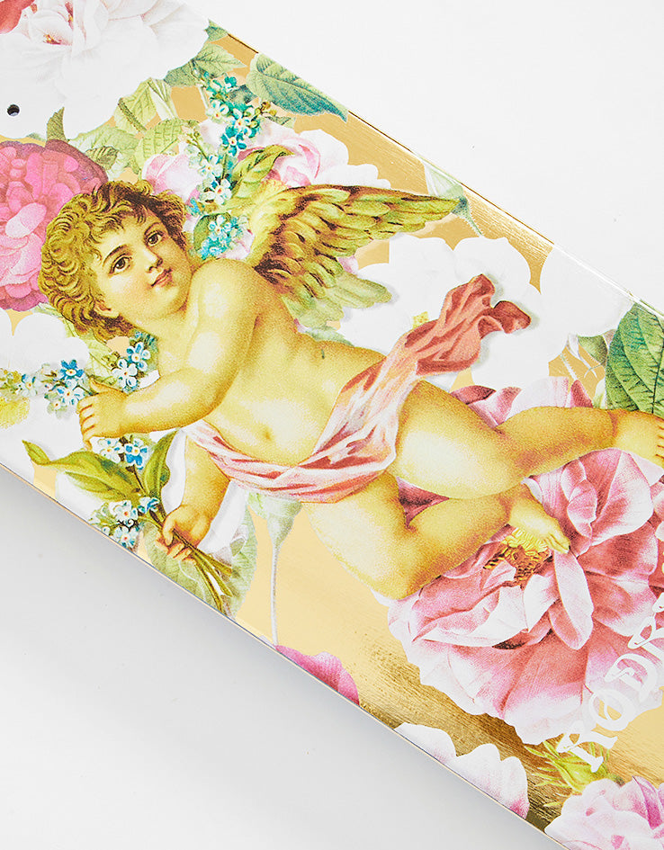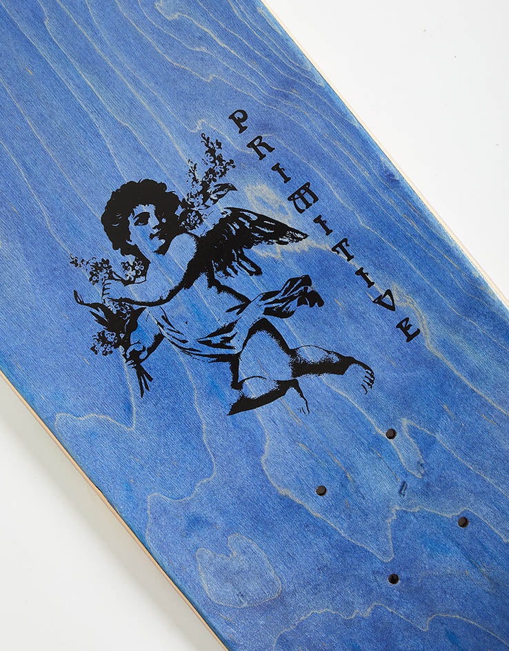 The Paul Rodriguez Guardian board from Primitive features a cherub painting in the centre of the deck with Primitive branding on the tail.