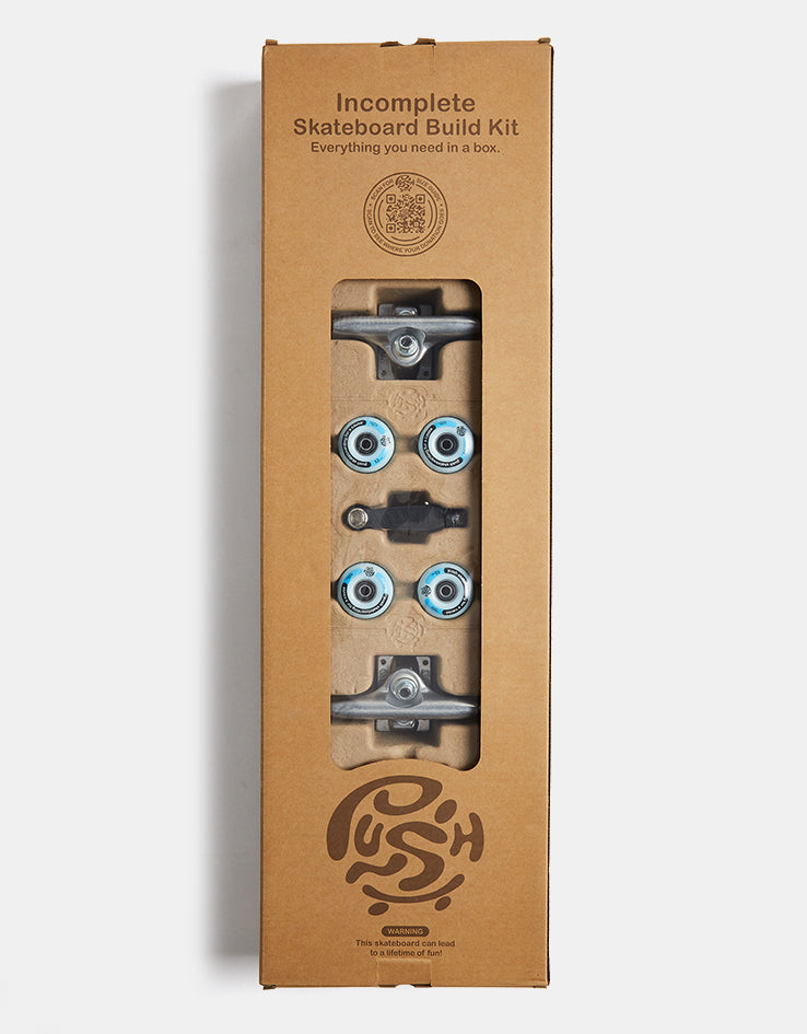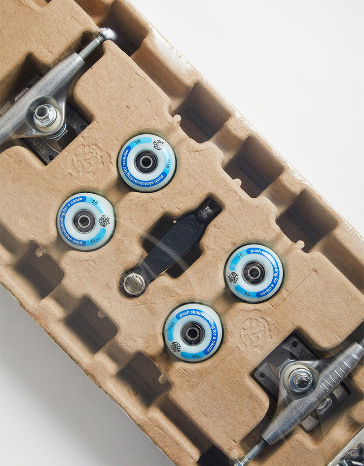 Driving for equality and positivity the world over through their shared love of skateboarding, Push and Make Life Skate Life come together to deliver a collection of (in)complete boards, giving you your first push into your skateboarding journey. Each of the four-board series features a deconstructed setup and skate tool, equipping you with the gear and knowledge necessary to get you rolling. The Push Plywood Guy FP Incomplete Skateboard comes in at 7.25" wide and comes boxed with 2 Cannon trucks, 4 wheels with bearings, nuts & bolts and 1 Prime8 skate tool. The deck features a figure made out of plywood on a yellow background with Push branding on the tail.