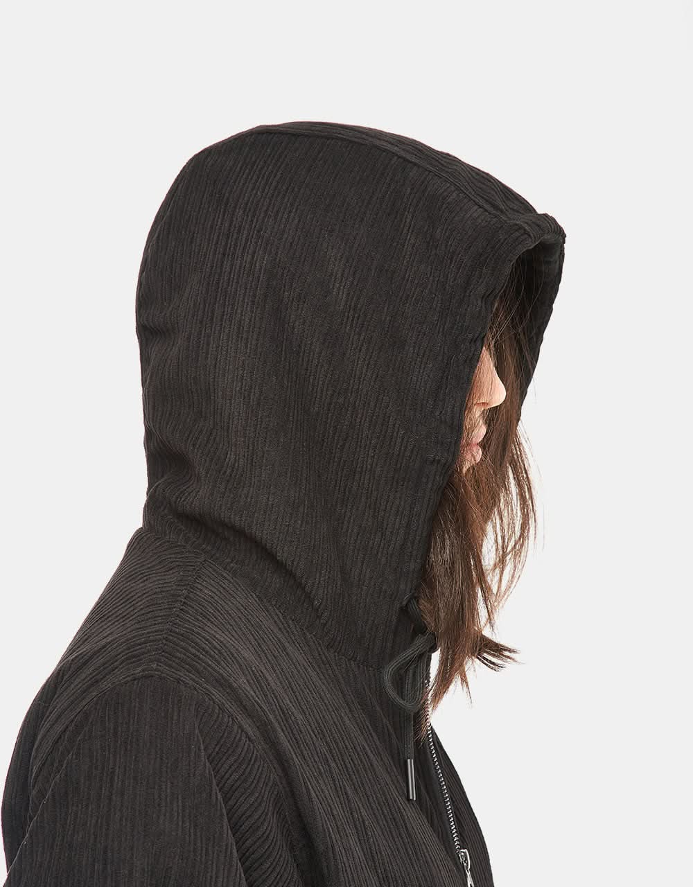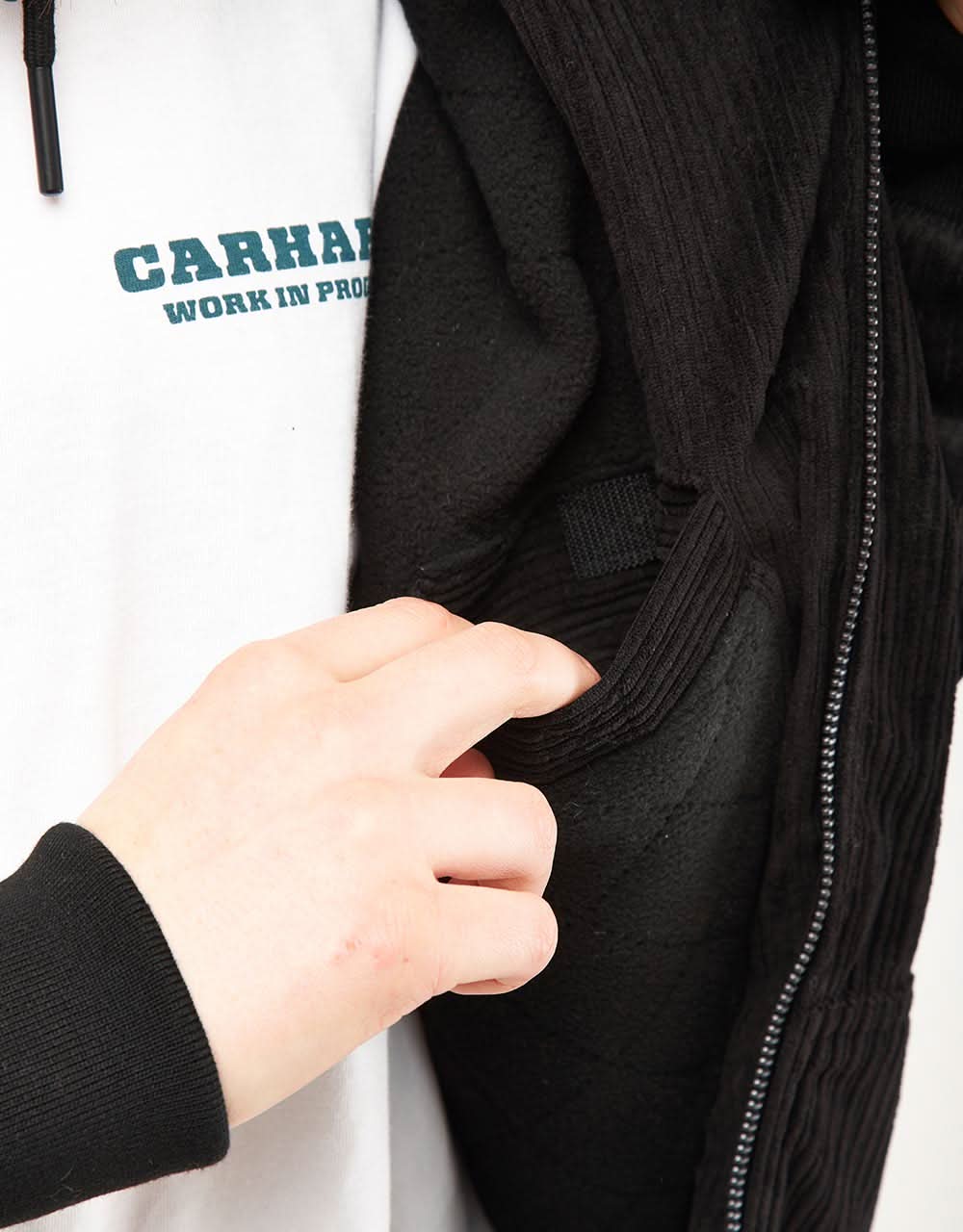 The Route One Workwear Jacket in Washed Black cord is a wardrobe staple, designed to keep you cozy in the winter months ahead. Featuring a fleece-lined kangaroo pocket and fully lined with 40G quilted wadding, this jacket is made with comfort in mind.