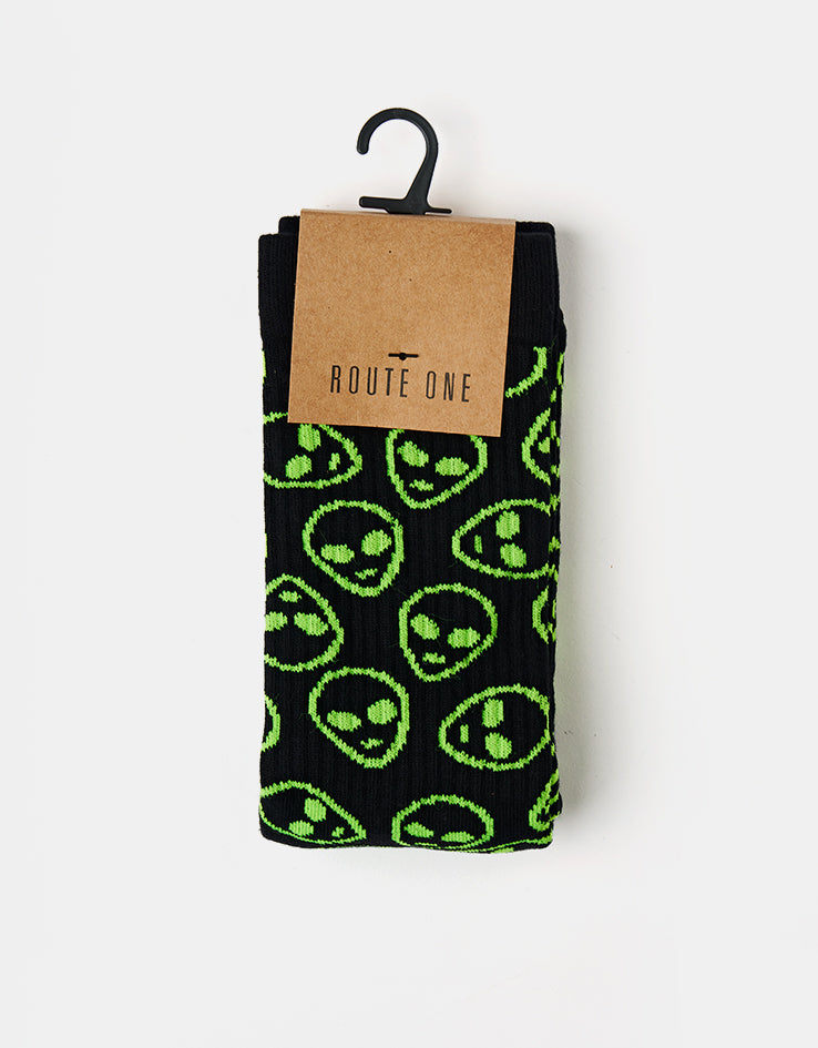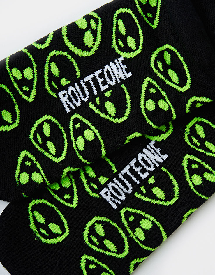 The Route One Alien socks have been constructed from a heavyweight cotton/polyamide blend with a touch of elastane for comfort and subtle stretch. They feature a cushioned footbed to give support and provide you with long-lasting socks. Graphics are designed here in-house at Route One.