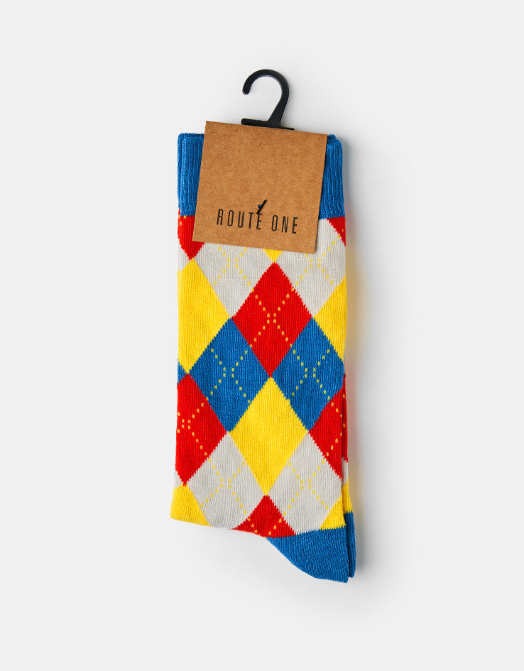 Route One Argyle Socks - Blue/Red/Yellow