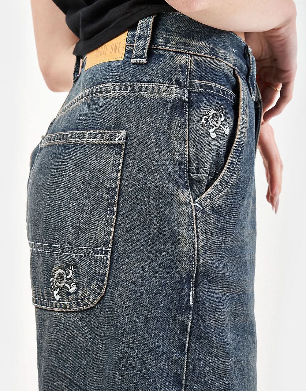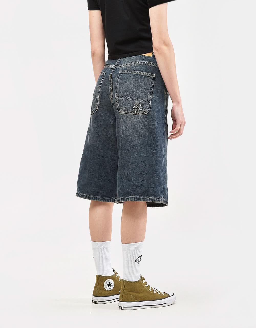 The shorts are made from a heavy-duty 13oz 100% cotton fabric and come in an oversized baggy fit. They feature a coin and back pocket embroidery detail, designed here at the Route One HO!