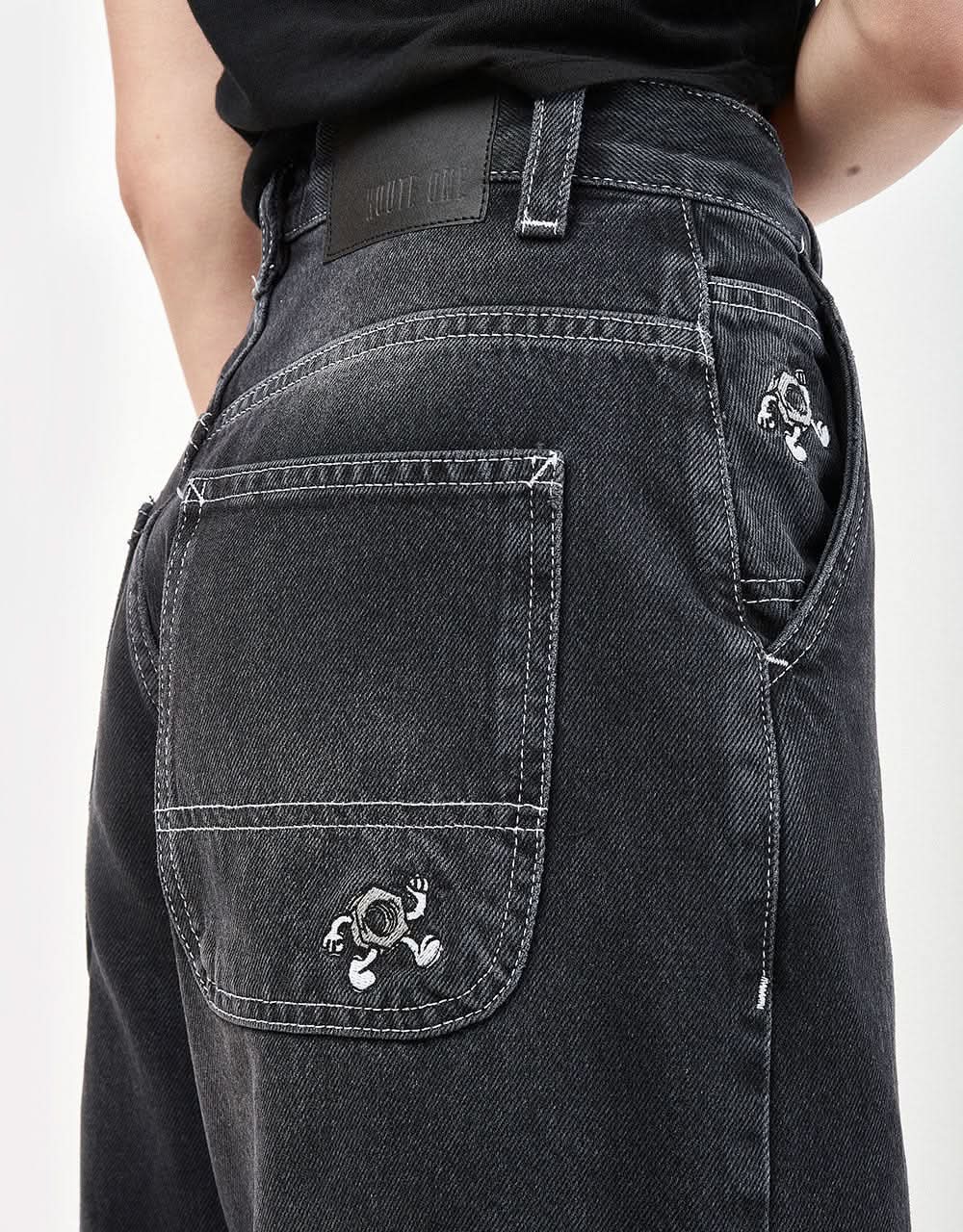 Introducing the new Route One Super Baggy XL Denim Bermuda Shorts in Washed Black. These XL shorts are a bigger, baggier version of our bestselling original Super Baggy 'Jort' Denim Shorts. The leg length and width and been increased for even more movement for those who want to make more of a statement with their short choices!