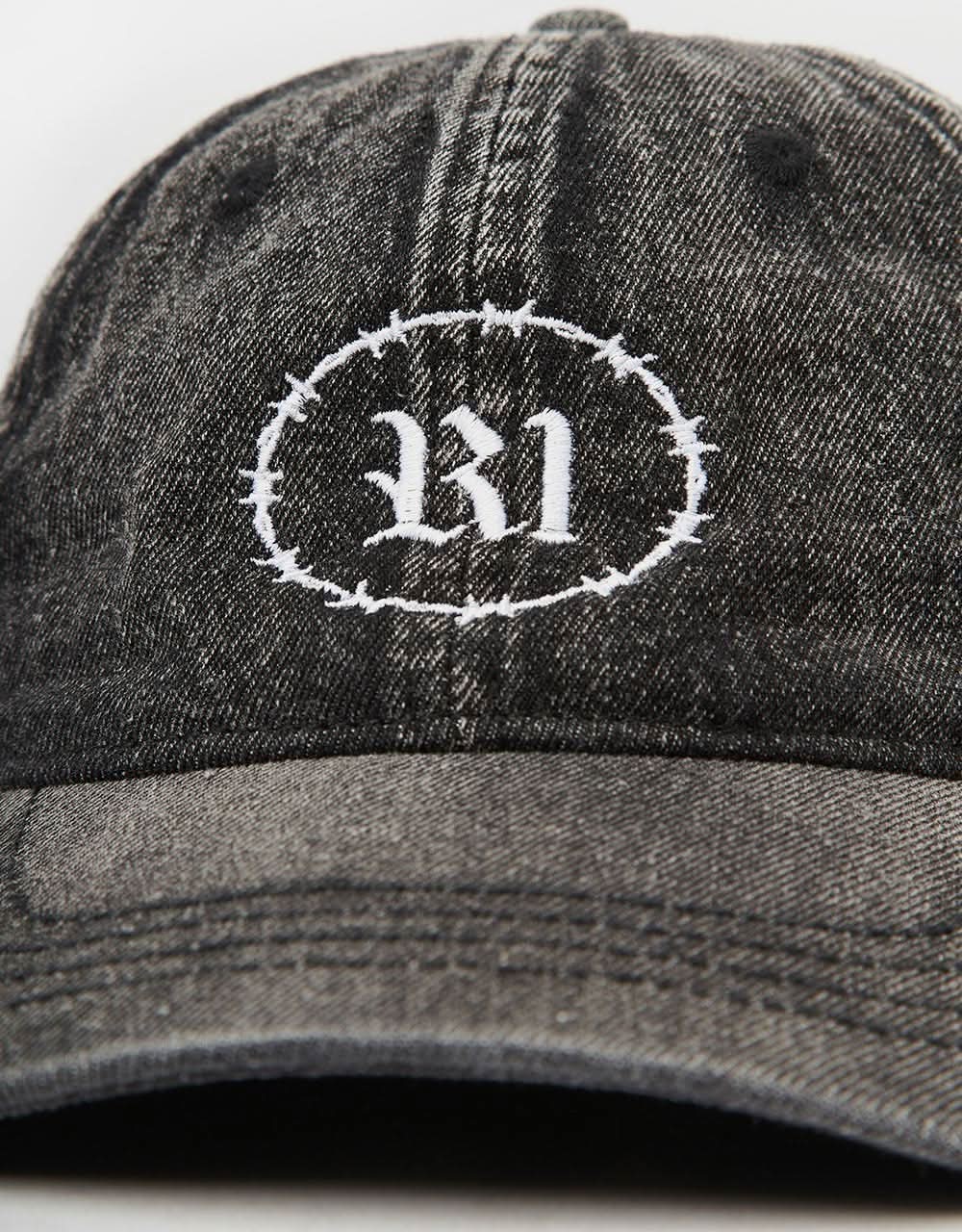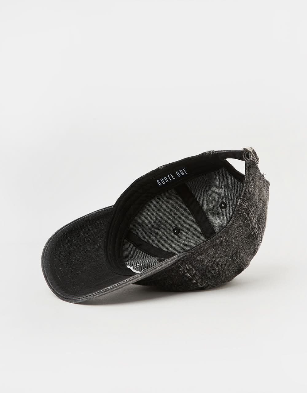 Route One Barbed Bleached Denim Dad Cap - Black Denim