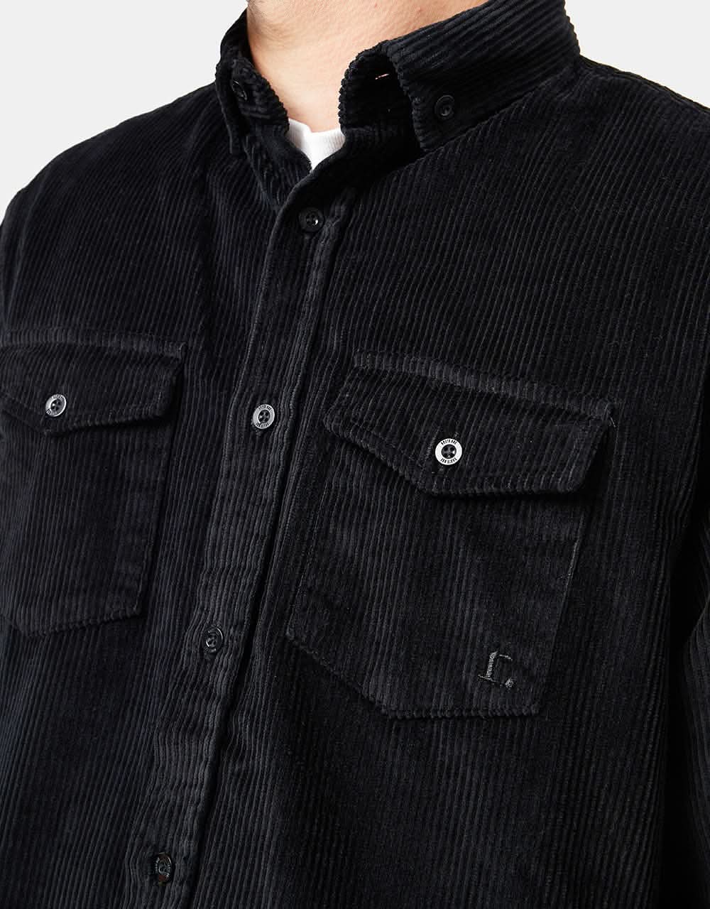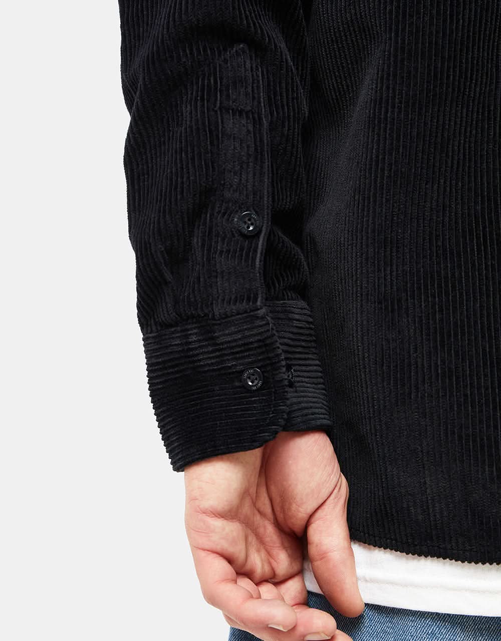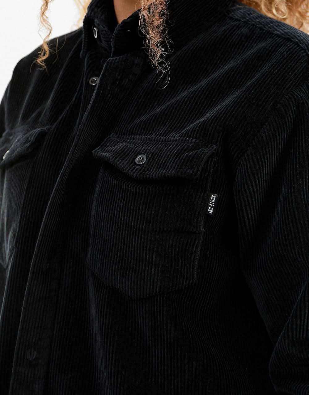 The Route One Big Wale Cord Shirt in Black is a shirt/jacket hybrid constructed from 100% Cotton heavy 8-Wale corduroy. It comes with a full button placket, large cuff closures and two classic chest pockets. This can be worn open with a tee underneath or buttoned up for extra warmth.