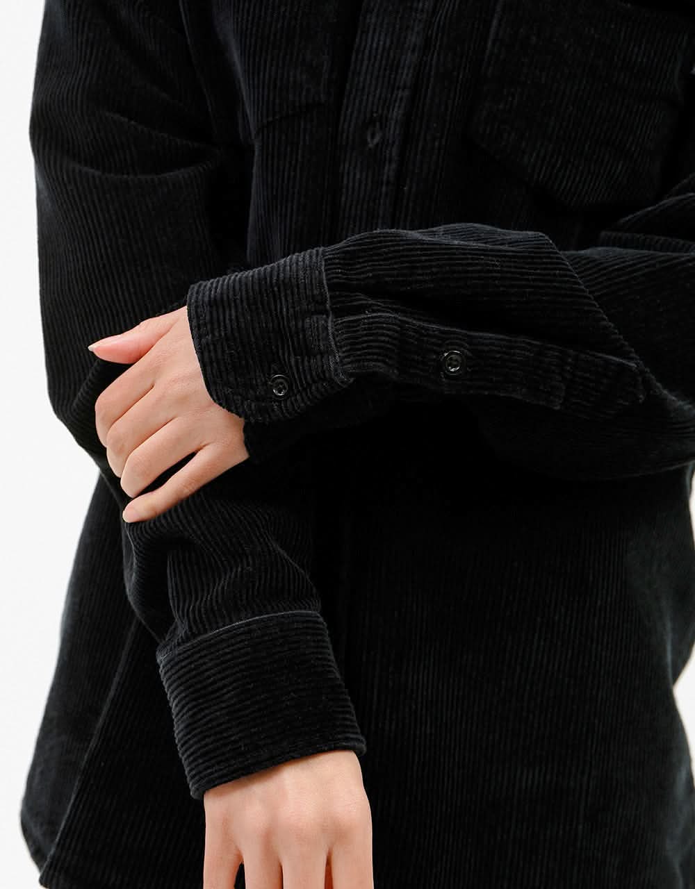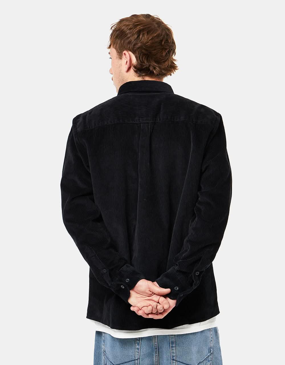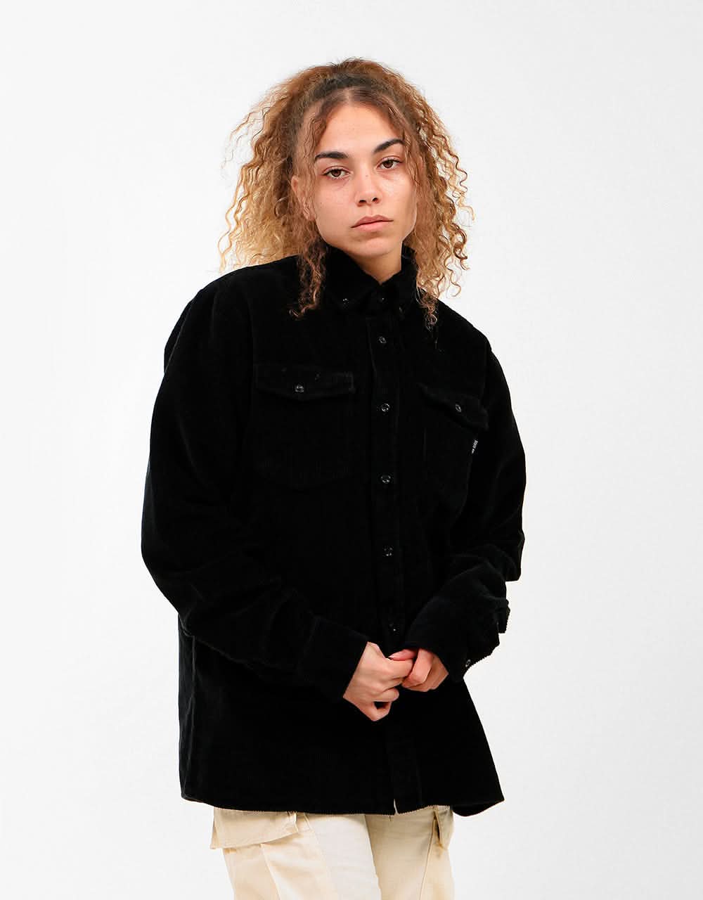 The Route One Big Wale Cord Shirt in Black is a shirt/jacket hybrid constructed from 100% Cotton heavy 8-Wale corduroy. It comes with a full button placket, large cuff closures and two classic chest pockets. This can be worn open with a tee underneath or buttoned up for extra warmth.