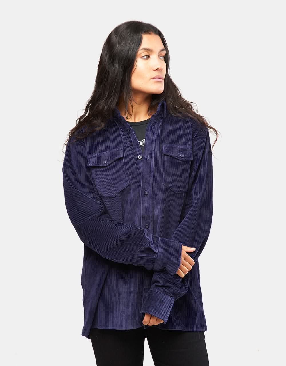 The Route One Big Wale Cord Shirt in Navy is a shirt/jacket hybrid constructed from 100% Cotton heavy 8-Wale corduroy. It comes with a full button placket, large cuff closures and two classic chest pockets. This can be worn open with a tee underneath or buttoned up for extra warmth.