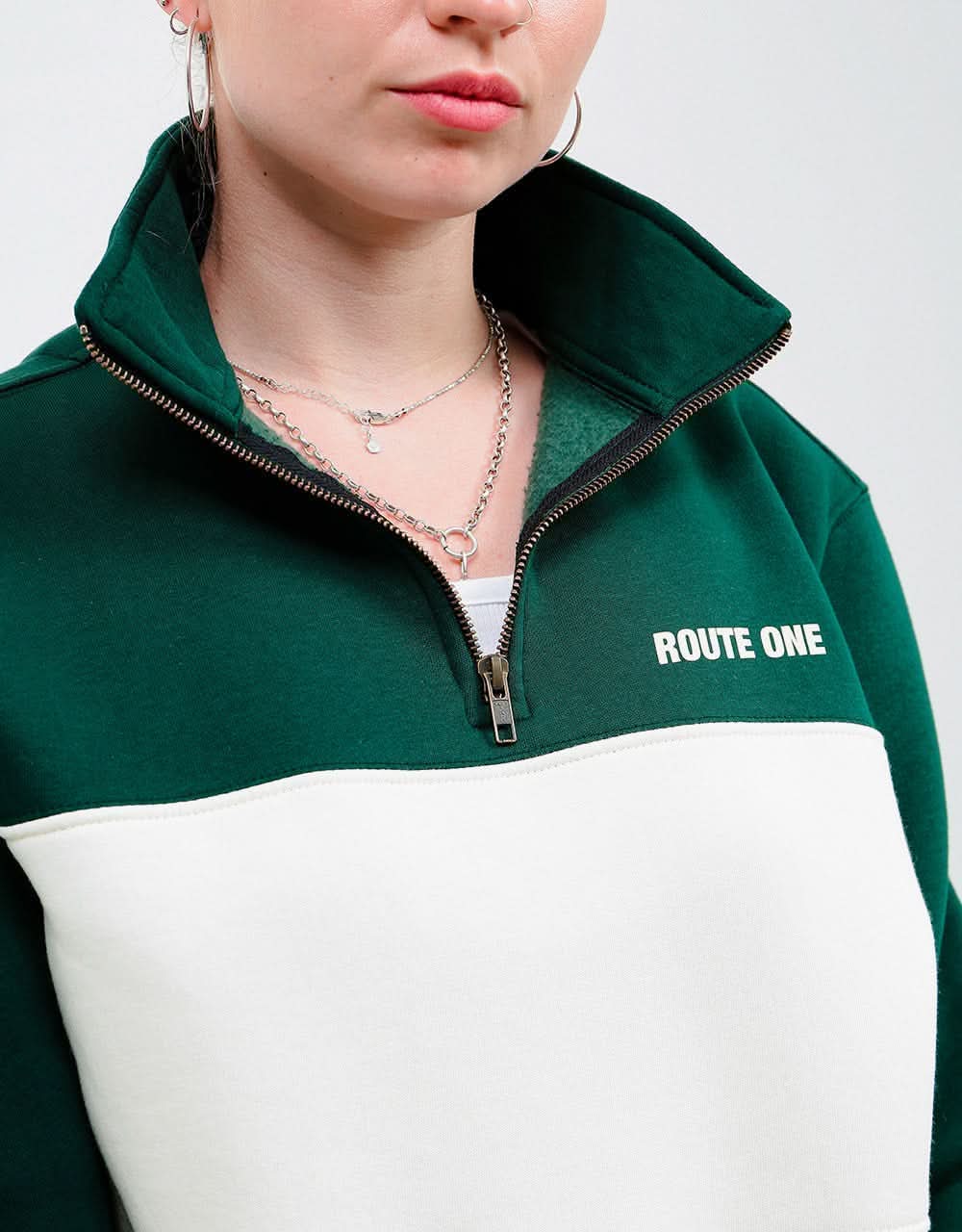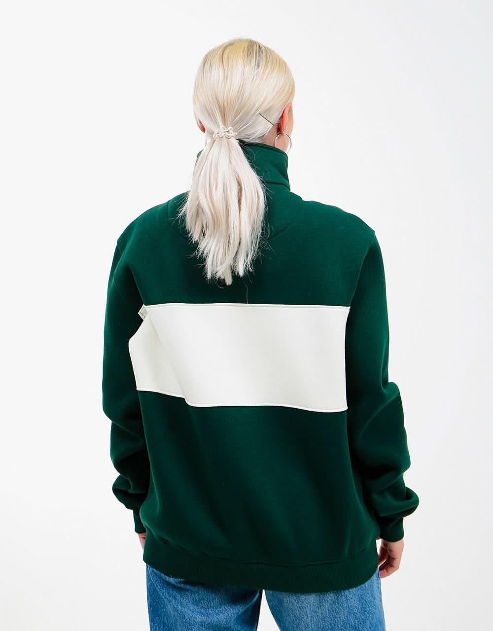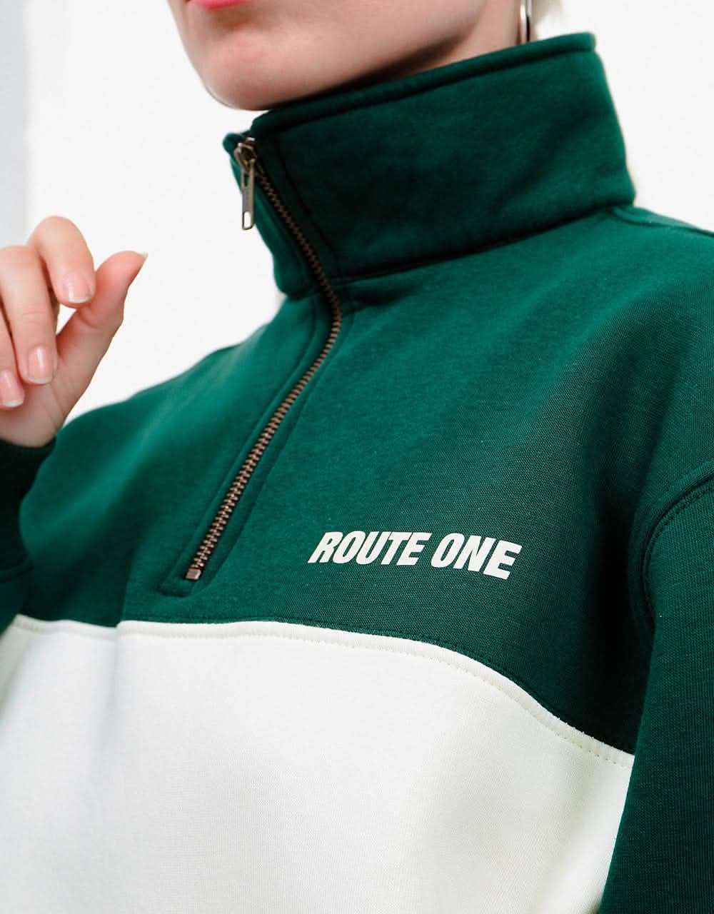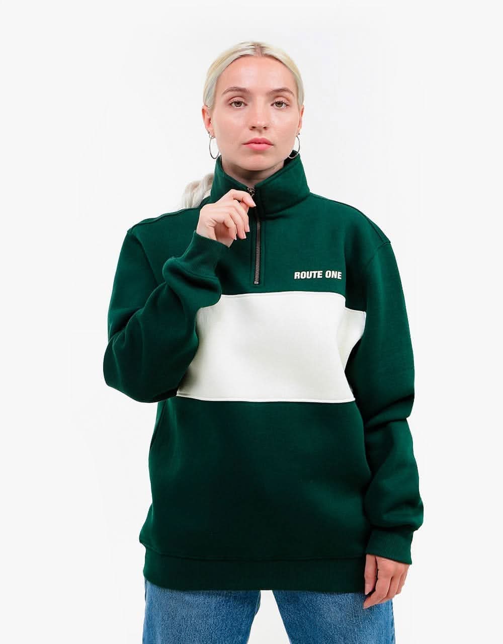 Route One Blocked 1/4 Zip Sweat - Forest Green/Stone