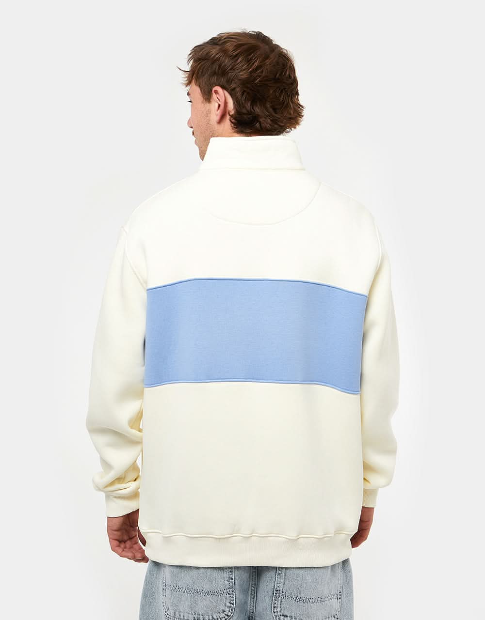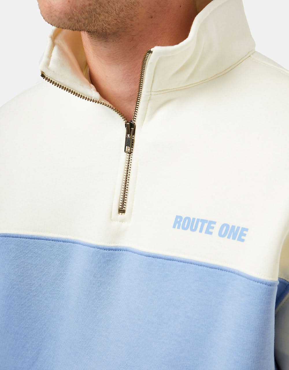 Route One Blocked 1/4 Zip Sweat - Stone/Baby Blue