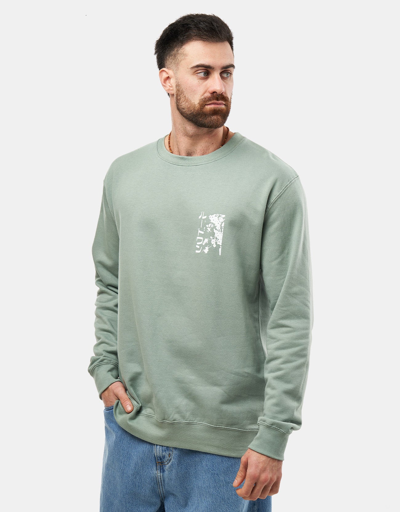 The Route One Blossoms Sweatshirt in Dusty Green has been built from cotton/polyester blend and features a ribbed crew neckline, loose long sleeves and a printed neck label for itch-free comfort. Custom screen-printed illustration has been placed on the left chest and large across the reverse, designed in-house here at head office.