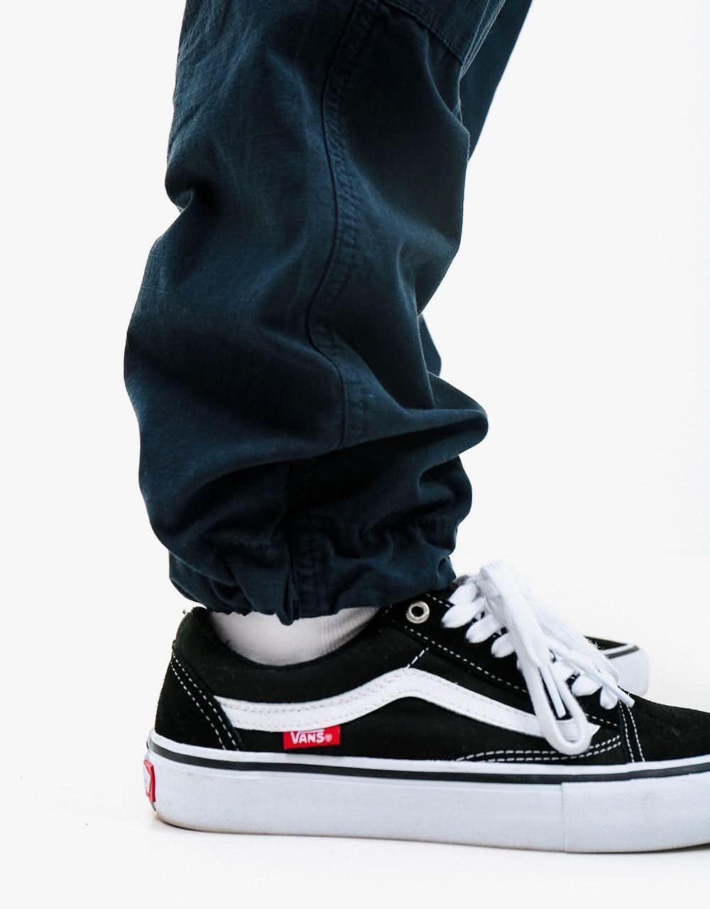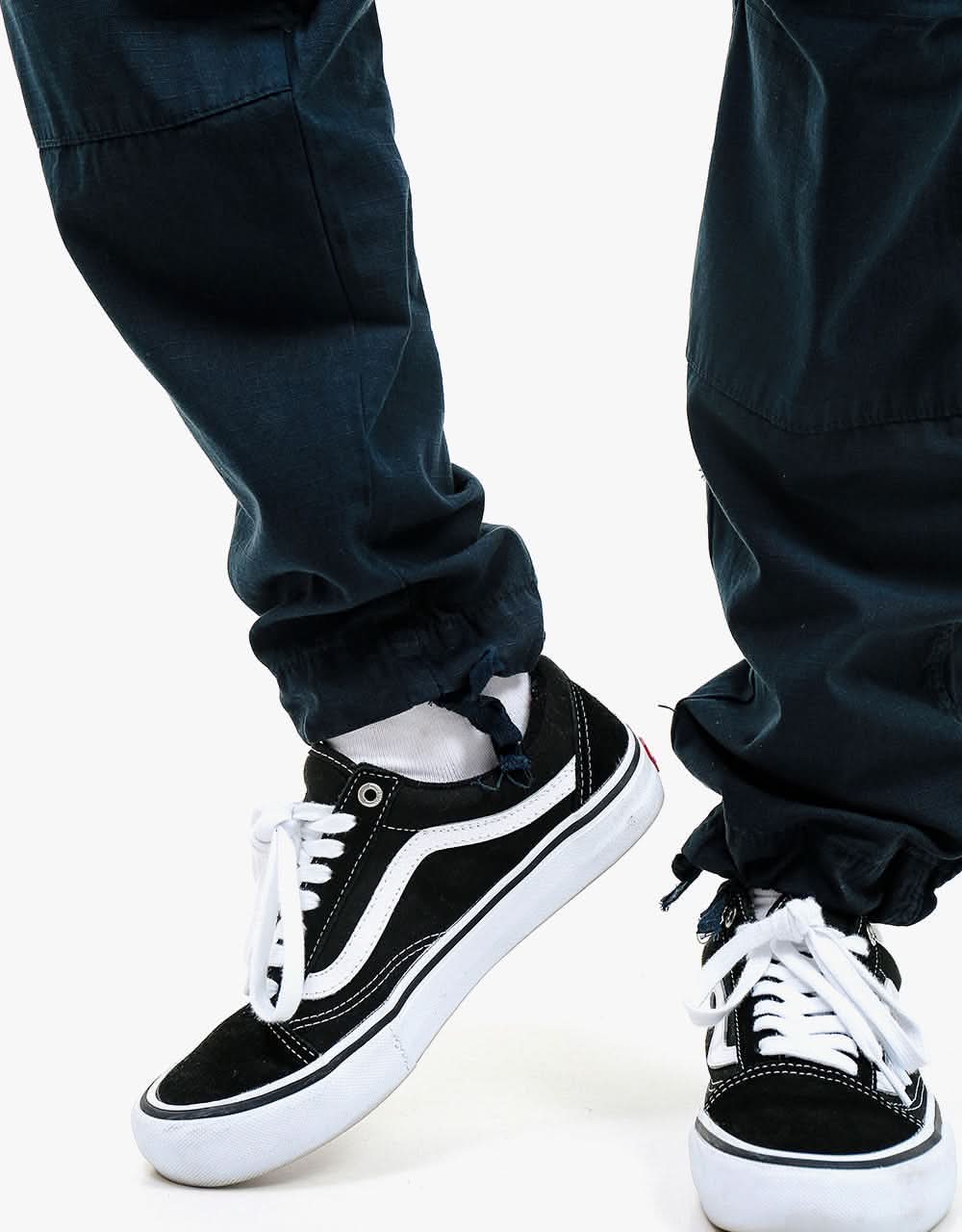 The Route One Cargo Pants in Navy fit true to size, however, if you are on the cusp of two sizes then we recommend choosing a size up. They have a relaxed fit leg with a regular waist so they fit nice and snug around your hips, whilst still being roomy and comfortable on the leg. They have been built from high quality cotton/ripstop style fabric and feature pull cords at the leg opening, a 6-pocket construction and subtle Route One branding. Wear them cinched, rolled or undone - they're going to look good whatever you decide! Easy going, everyday cargos that have been designed with the wear and tear of skating in mind.