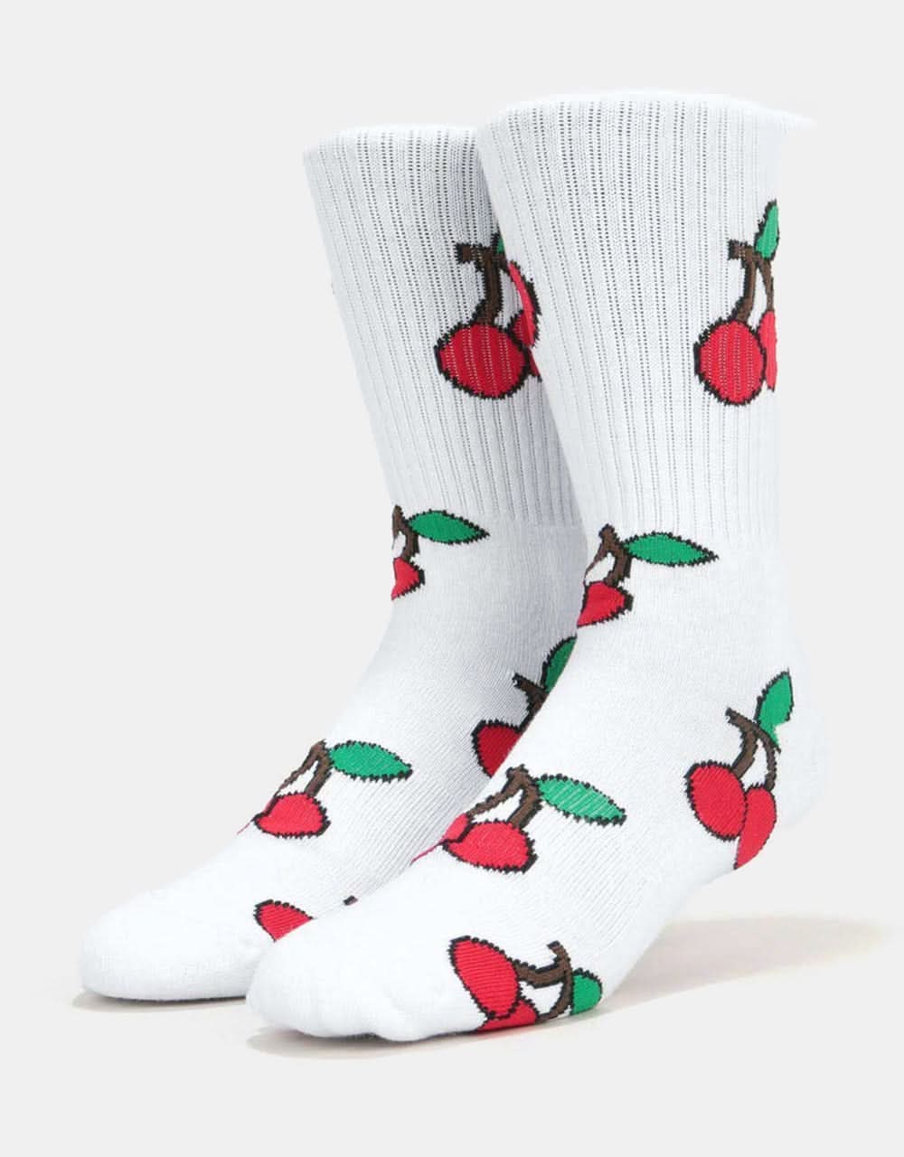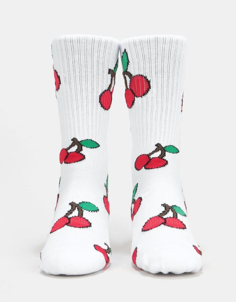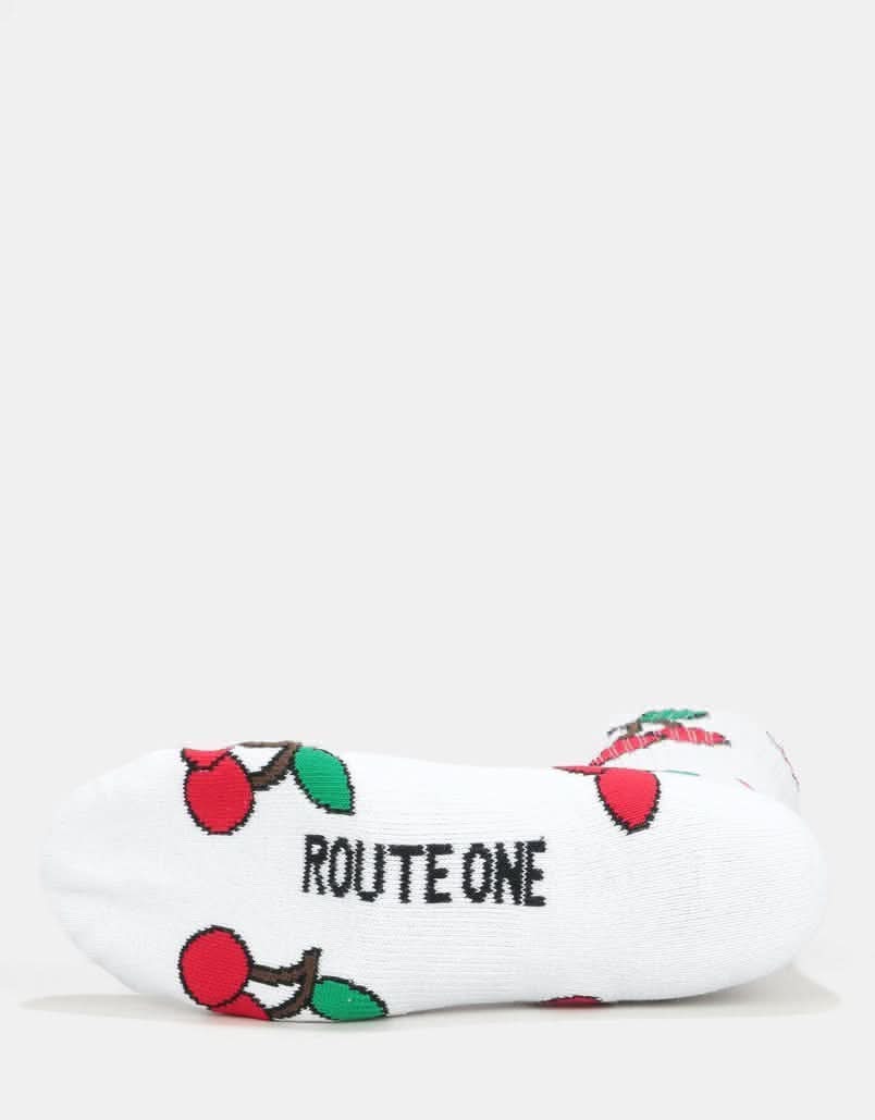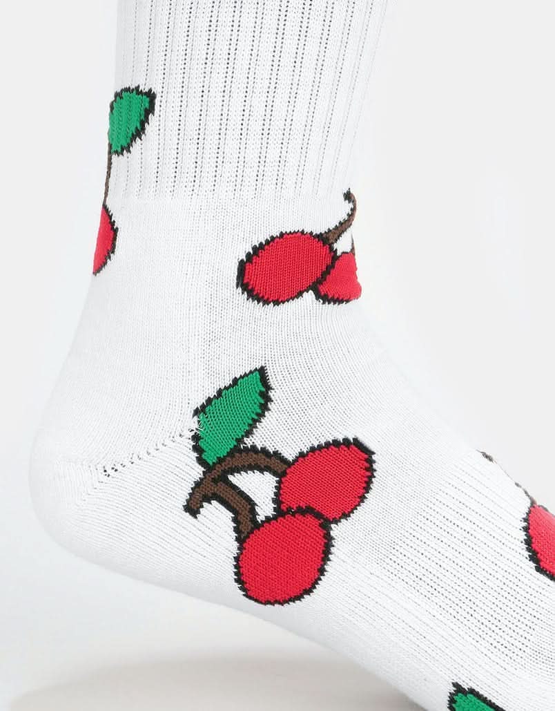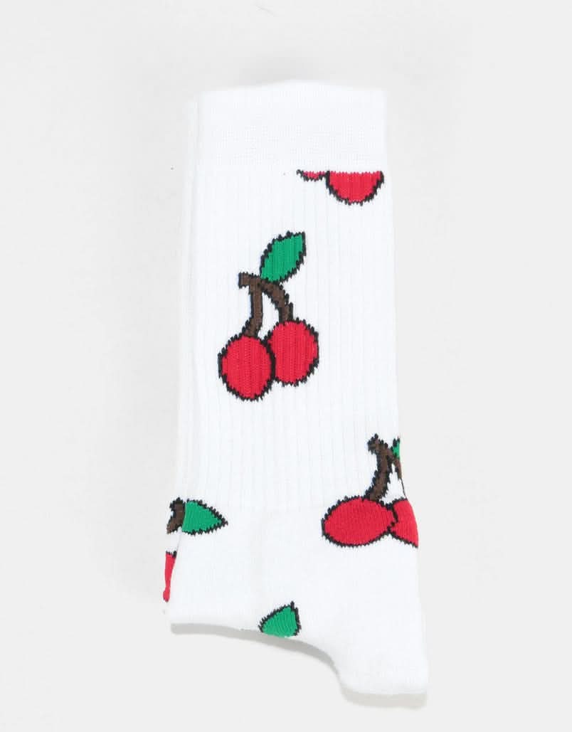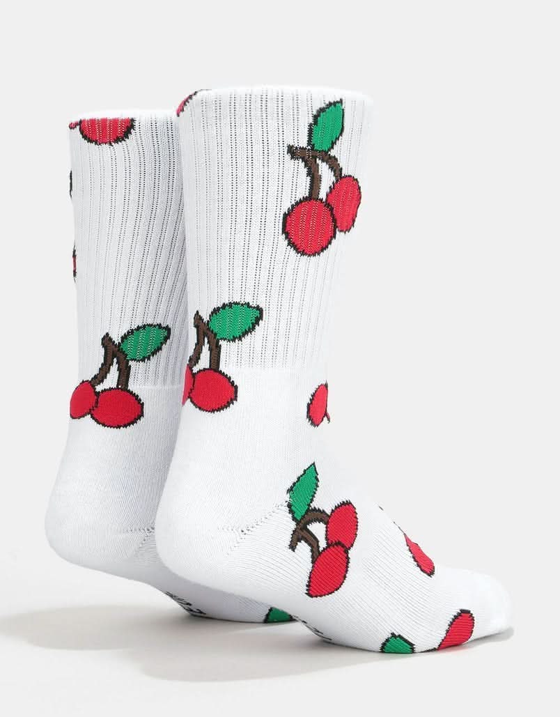 The Route One Cherries Crew Socks in White have been constructed from a premium, heavyweight cotton/polyamide blend with a touch of elastane for comfort and subtle stretch. Complete with a ribbed ankle, a jacquard Cherry print and a cushioned foot bed. At such an affordable price, you really cannot go wrong.