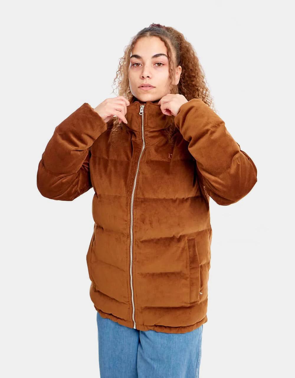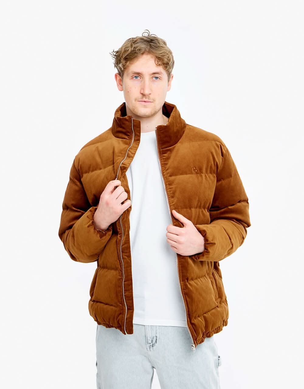 Our new heavy-weight corduroy puffer jacket comes in a warm Caramel and a deep Navy. The relaxed fit cosy winter jacket features two internal pockets, a small tonal embroidered logo and an elasticated cuff and hem for maximum comfort.