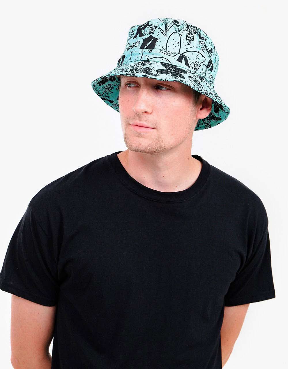 The Route One Doodle pattern is now available as a bucket hat. This bright, fun hat is available in an array of colours for every vibe and style. The 100% Cotton fabric and ventilation holes will keep your head cool everywhere from the skatepark to the rave!