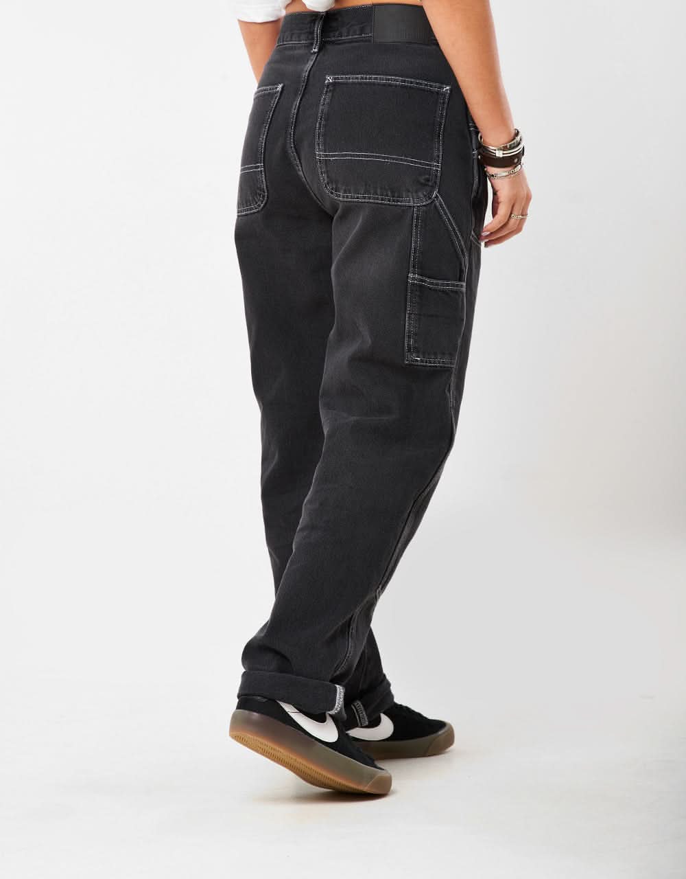 The Route One Double Knee Denim Pants in Washed black are constructed from 100% cotton heavyweight denim and are tailored to a relaxed, straight fit with a regular waist. Featuring eight handy pockets to stash your essentials, bartack stitching at vital stress points to provide durability, contrast stitching, and an extra panel to the front leg, these pants will become a new staple in any skateboarder's trouser collection.