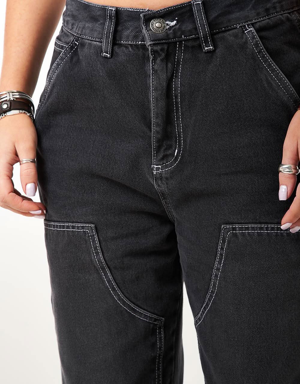 Route One Double Knee Denim Pants - Washed Black