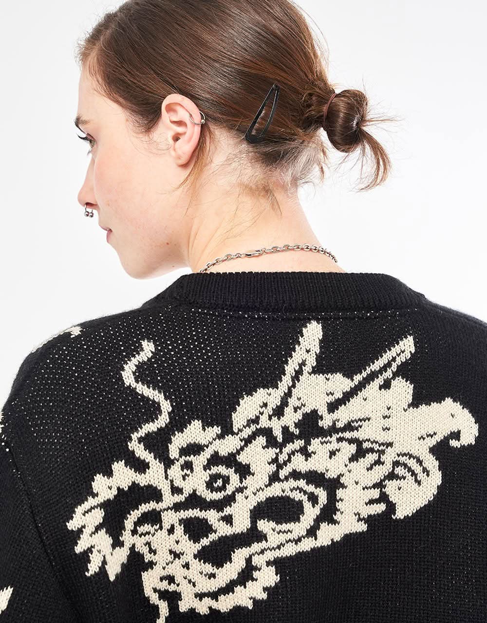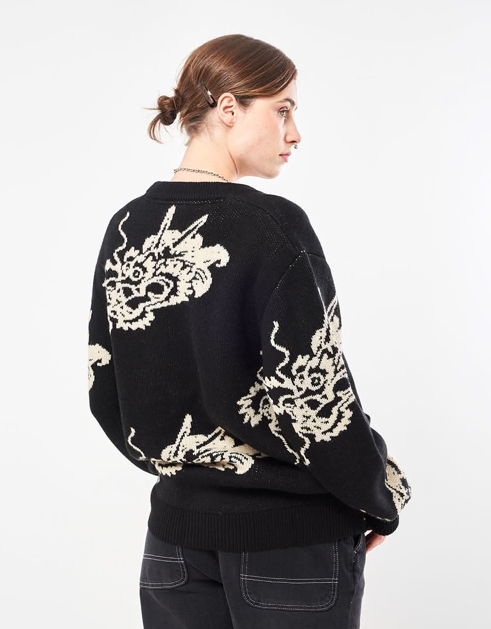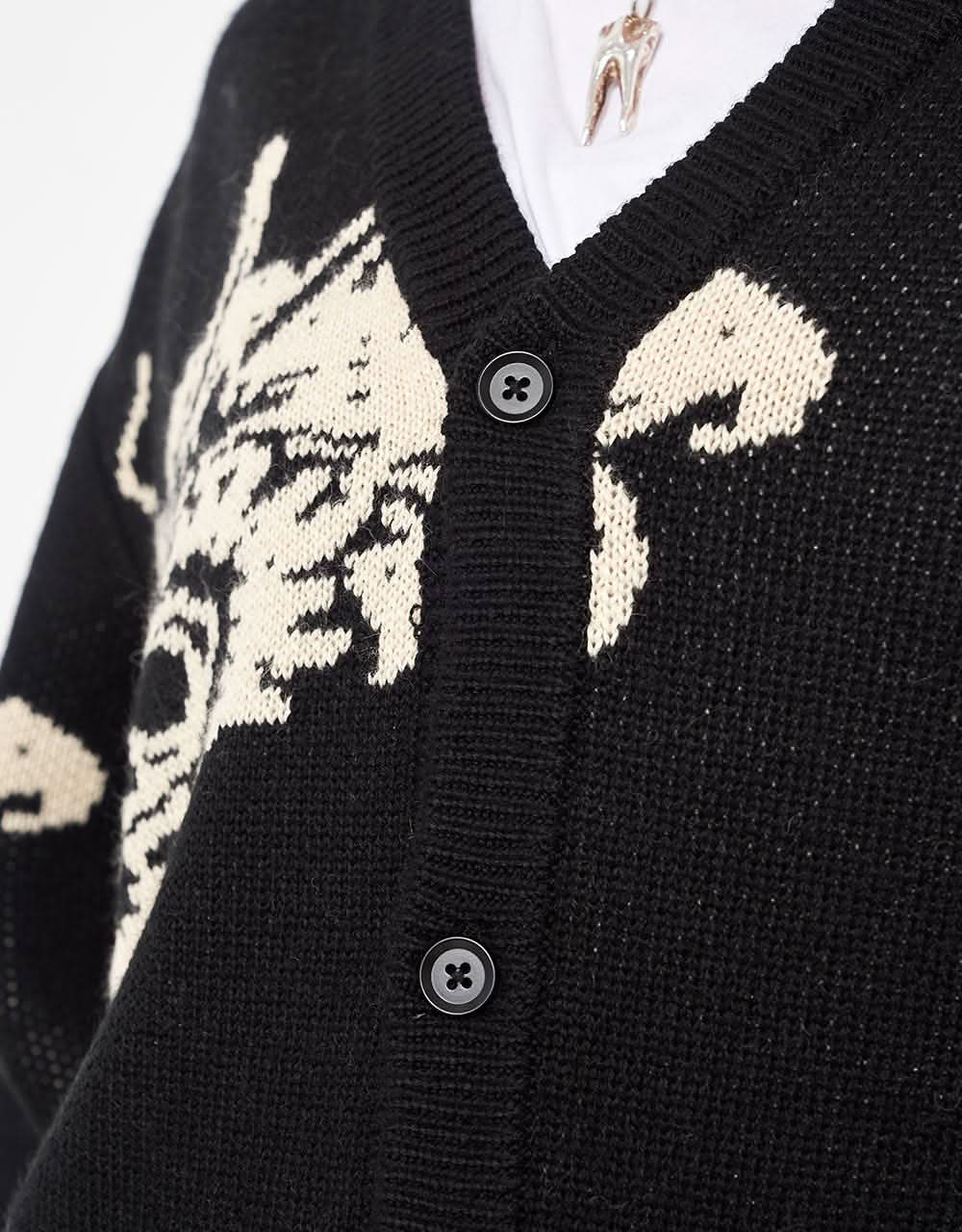 Not only will you feel like a hot dawg in the Dragon Knit, you can guarantee you'll also be the coolest looking cat at the function. With its all-over jacquard patterning, this cardigan has an aesthetic that is all about opposite forces - Over-the-top but understated, statement but staple, modern but classic. Yin-yang, baby.