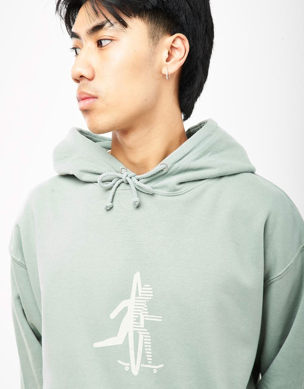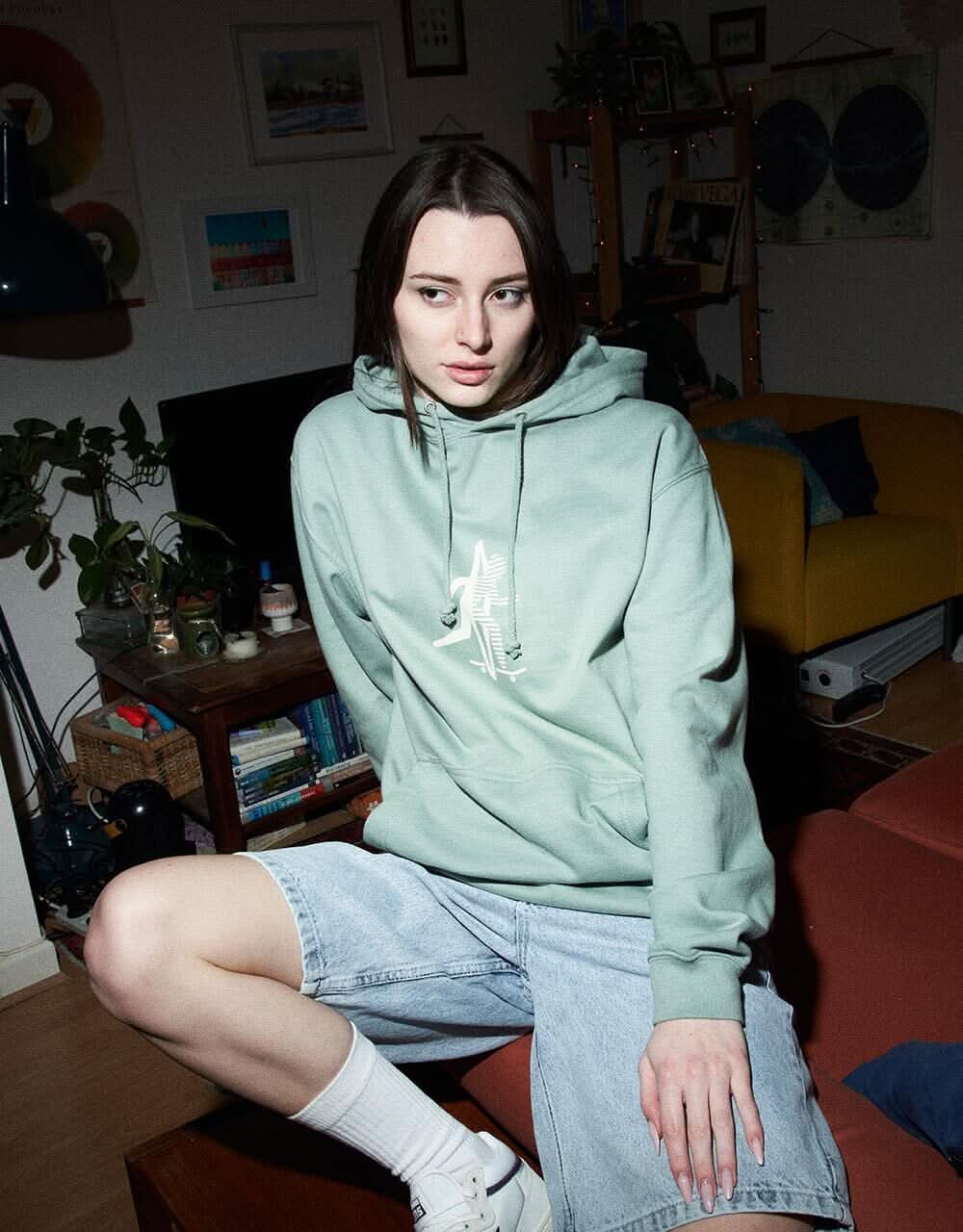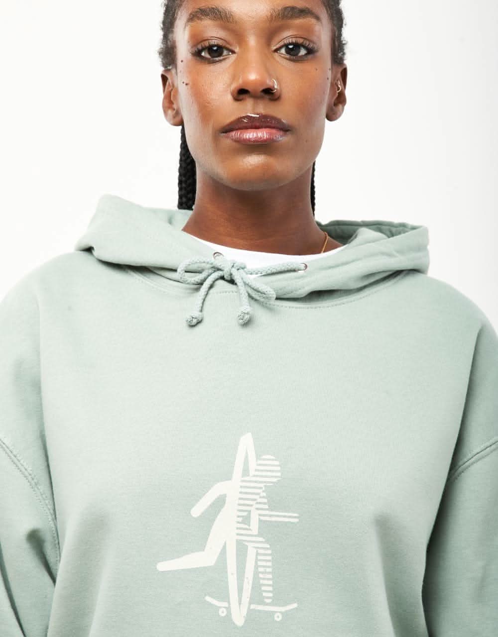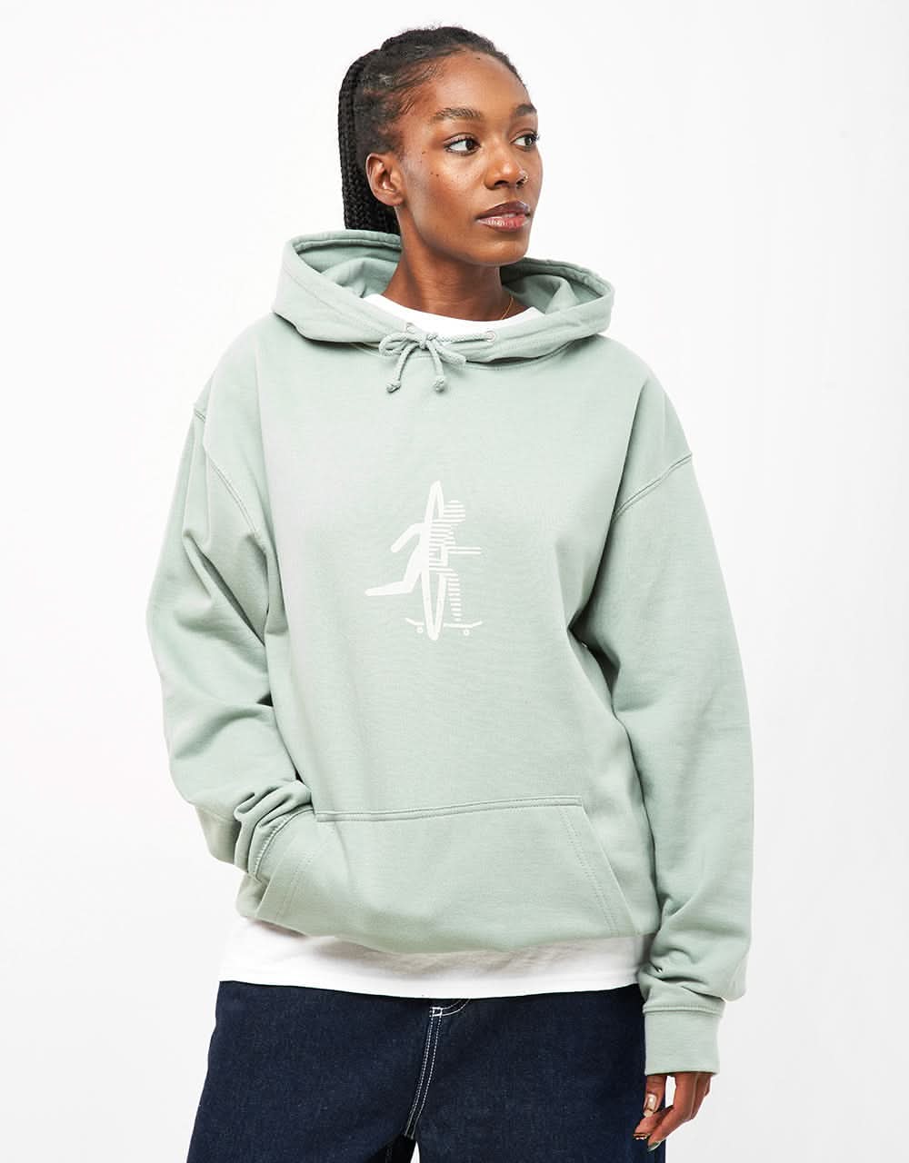 The Route One Final Frontier Pullover Hoodie in dusty green has been built from 100% cotton and features a comfy, slouchy hood, loose long sleeves and a printed neck label for itch-free comfort. Custom screen-printed illustrations have been placed at the centre front chest and in large across the reverse, designed in-house here at head office.