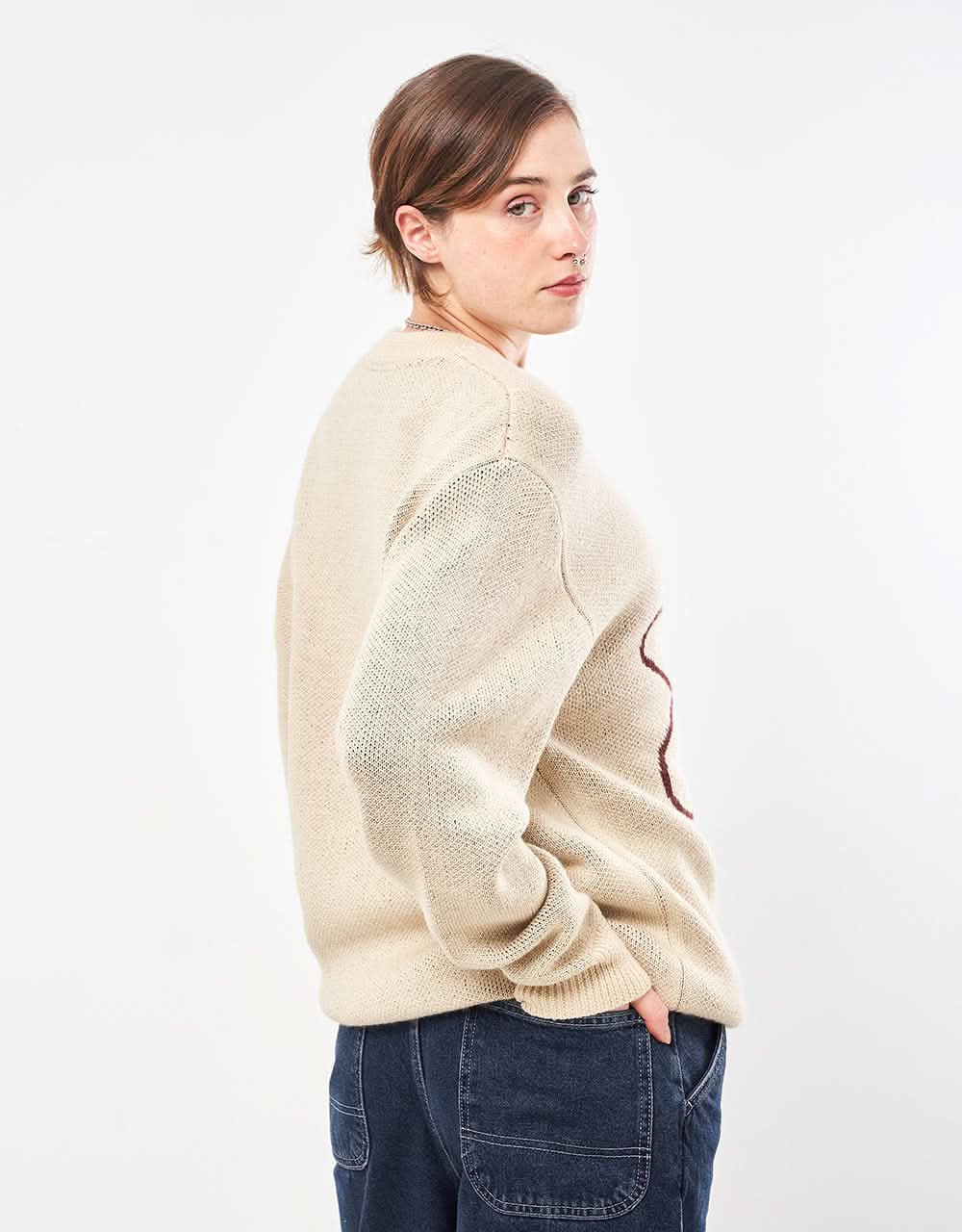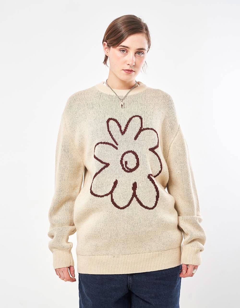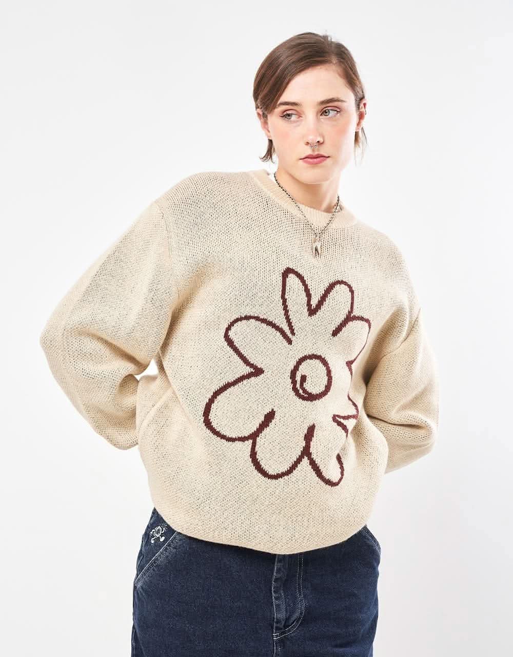 The Route One Flower Knitted Sweater is carefully crafted with a heavyweight Acrylic and Wool blend yarn and cut to a modern, slouchy fit that places itchy knitwear firmly in the past.
