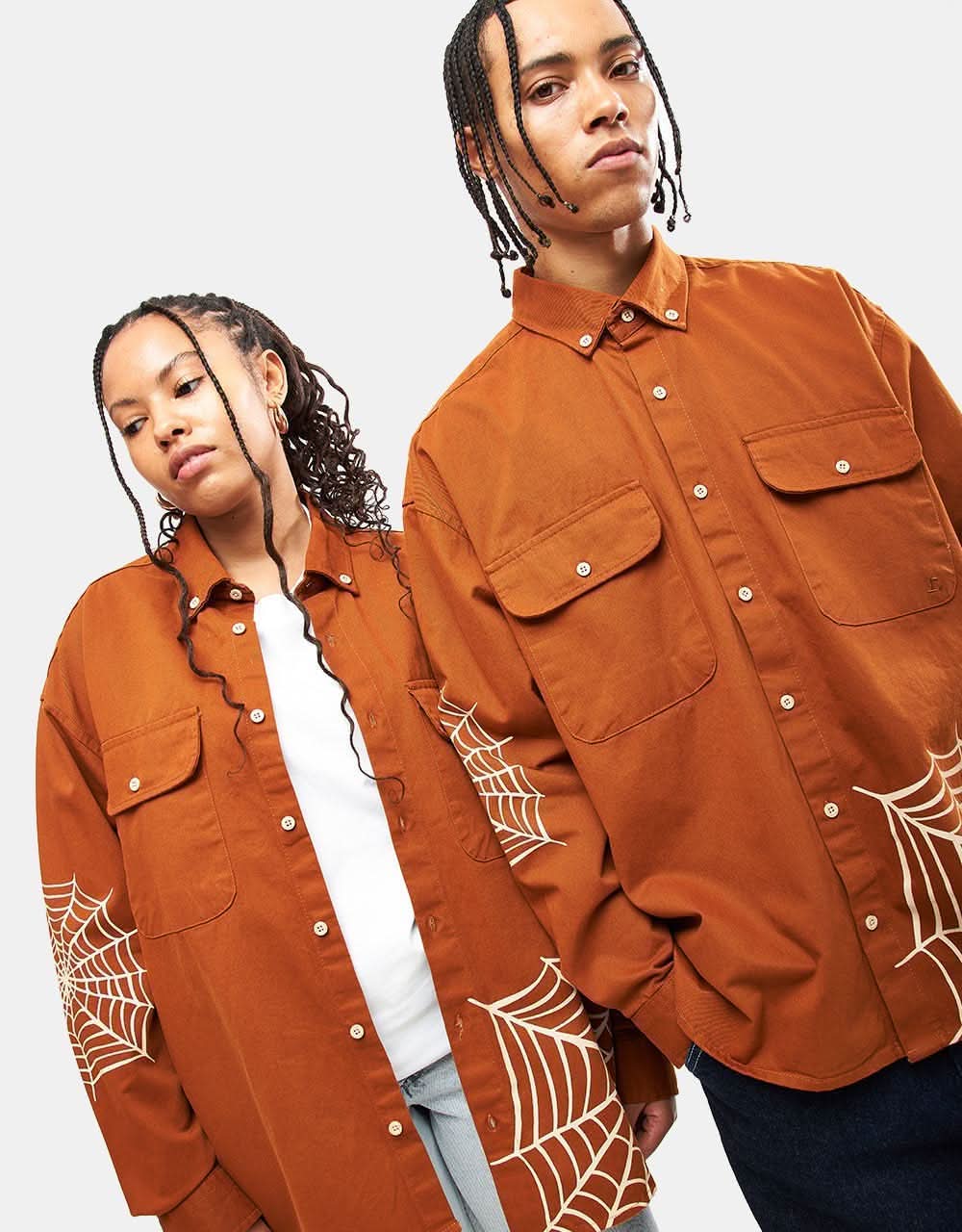 Route One Guarino Long Sleeve Shirt - Spiderweb/Brown