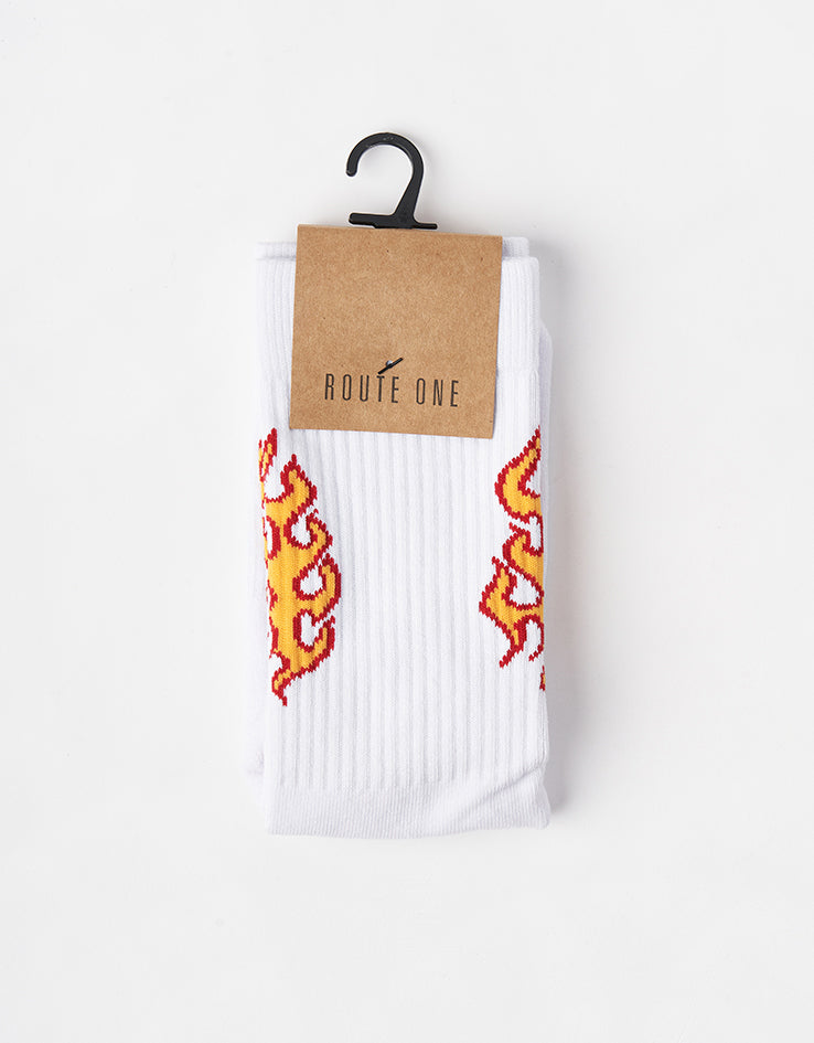 Route One Hot Rod Crew Socks - White