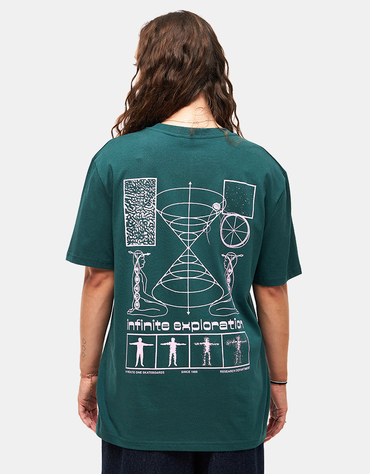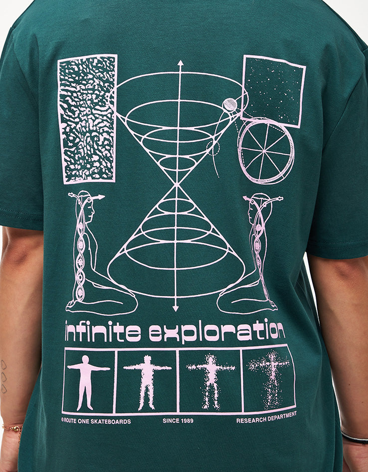 Crafted from 100% organic cotton, the Route One Infinite T-Shirt offers all-day comfort with a soft feel, ribbed crew neckline, and relaxed short sleeves. The updated silhouette offers an improved fit, while exclusive in-house illustrations screen-printed on the centre chest and boldly across the back deliver a standout look.