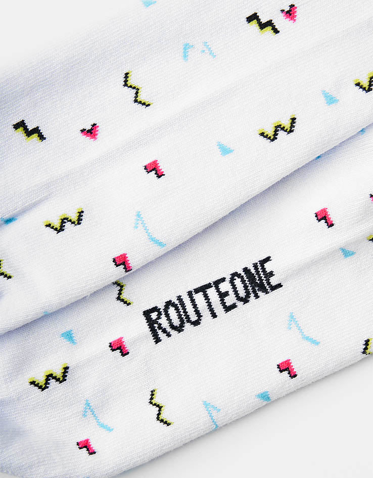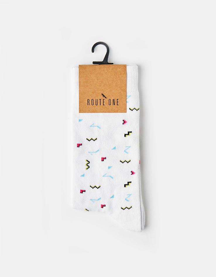 The Route One Jazzy Socks in White have been constructed from a cotton/polyamide blend with touch of elastane to give them that extra comfort and subtle stretch. With an all over jacquard jazzy design, these will look sick poking out the bottom of your jeans! At such an affordable price, you really can't go wrong.