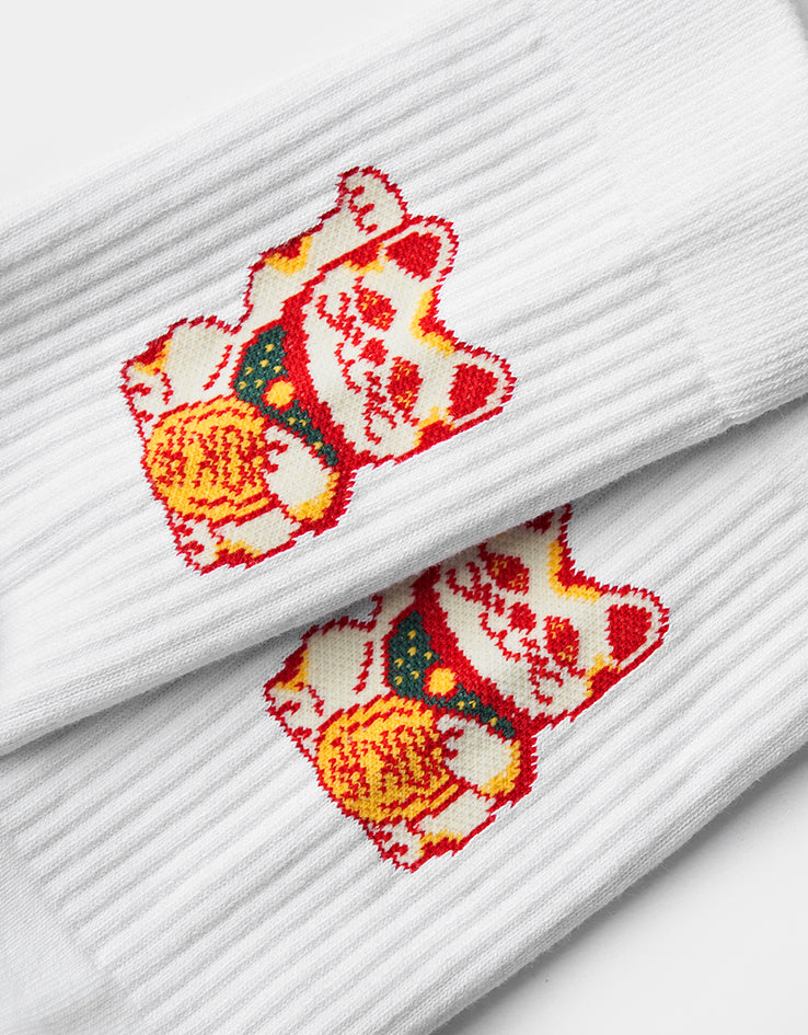 The Route One Lucky Cat Socks in White have been constructed from a premium, heavyweight cotton/polyamide blend with a touch of elastane for comfort and subtle stretch. Complete with a ribbed ankle, jacquard print details and a cushioned foot bed. At such an affordable price, you really cannot go wrong.