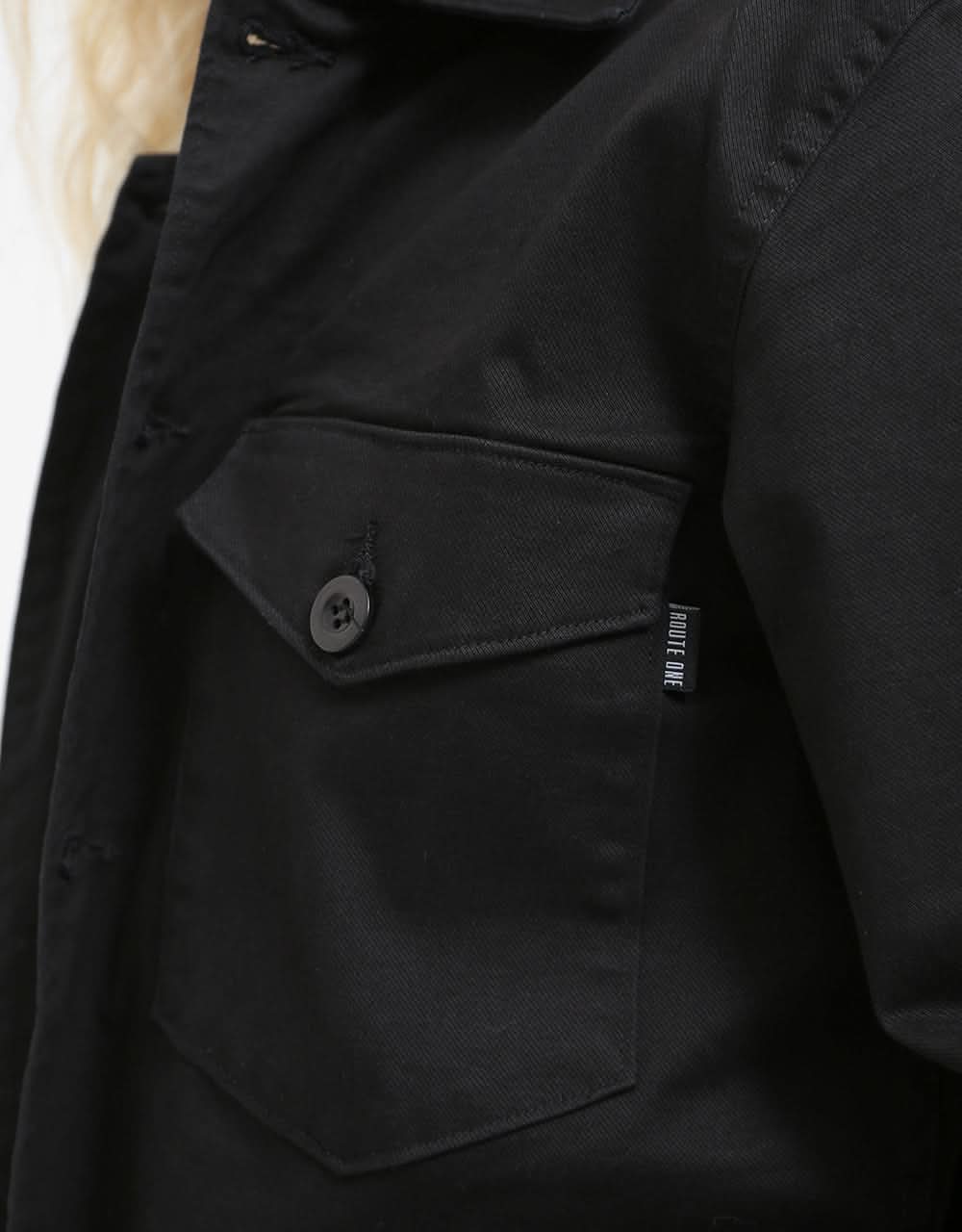 The Route One Military Shirt in Black is the perfect over shirt for any season. With a full button placket, a classic collar and two chest pockets; this will look great buttoned up with chinos or open with a tee beneath for a more relaxed look.