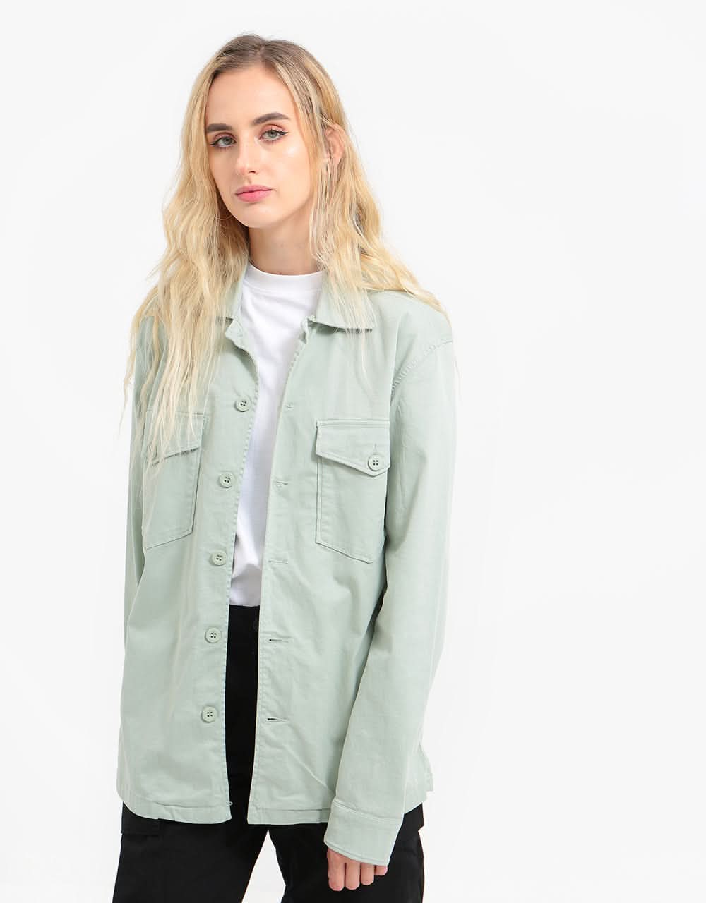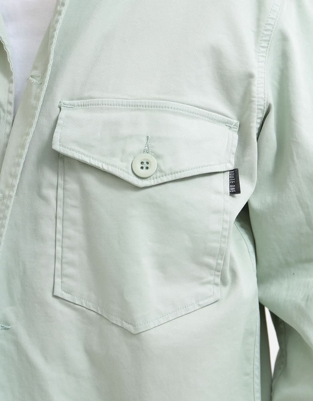The Route One Military Shirt in Dusty Mint is the perfect over shirt for any season. With a full button placket, a classic collar and two chest pockets; this will look great buttoned up with chinos or open with a tee beneath for a more relaxed look.