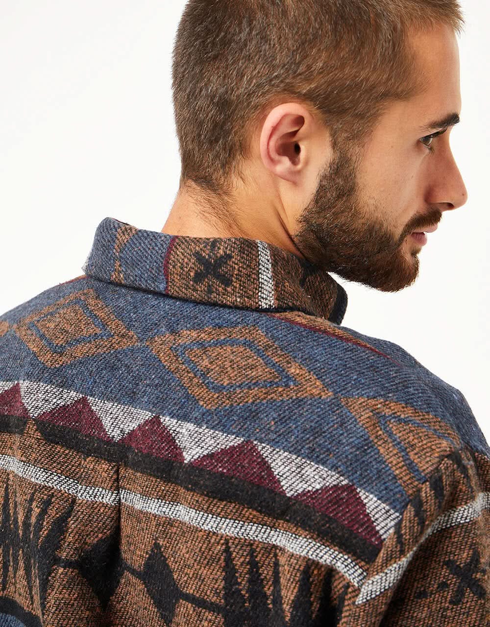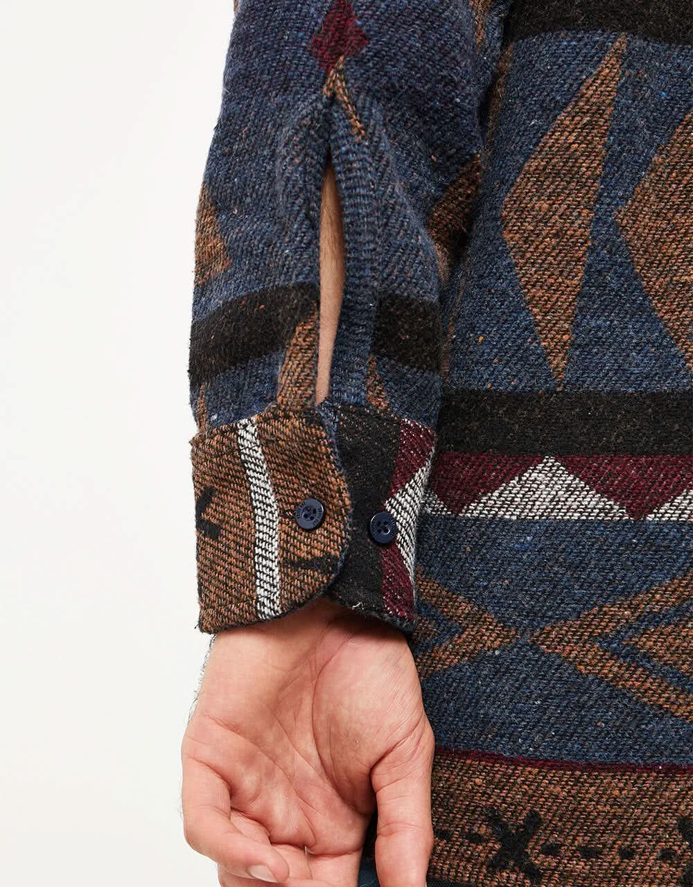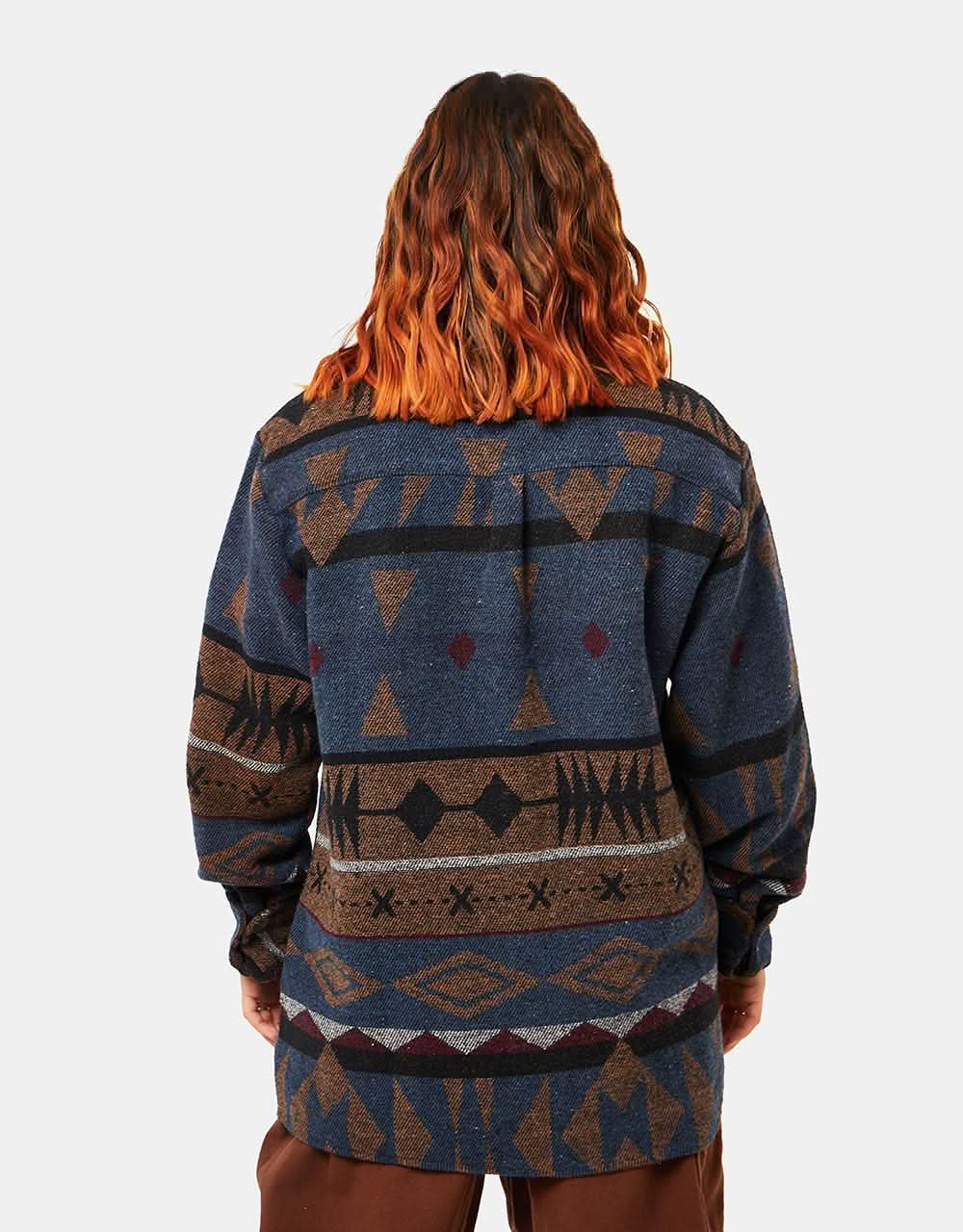 Route One Navajo Heavyweight Flannel Shirt - Imperial Blue/Brown