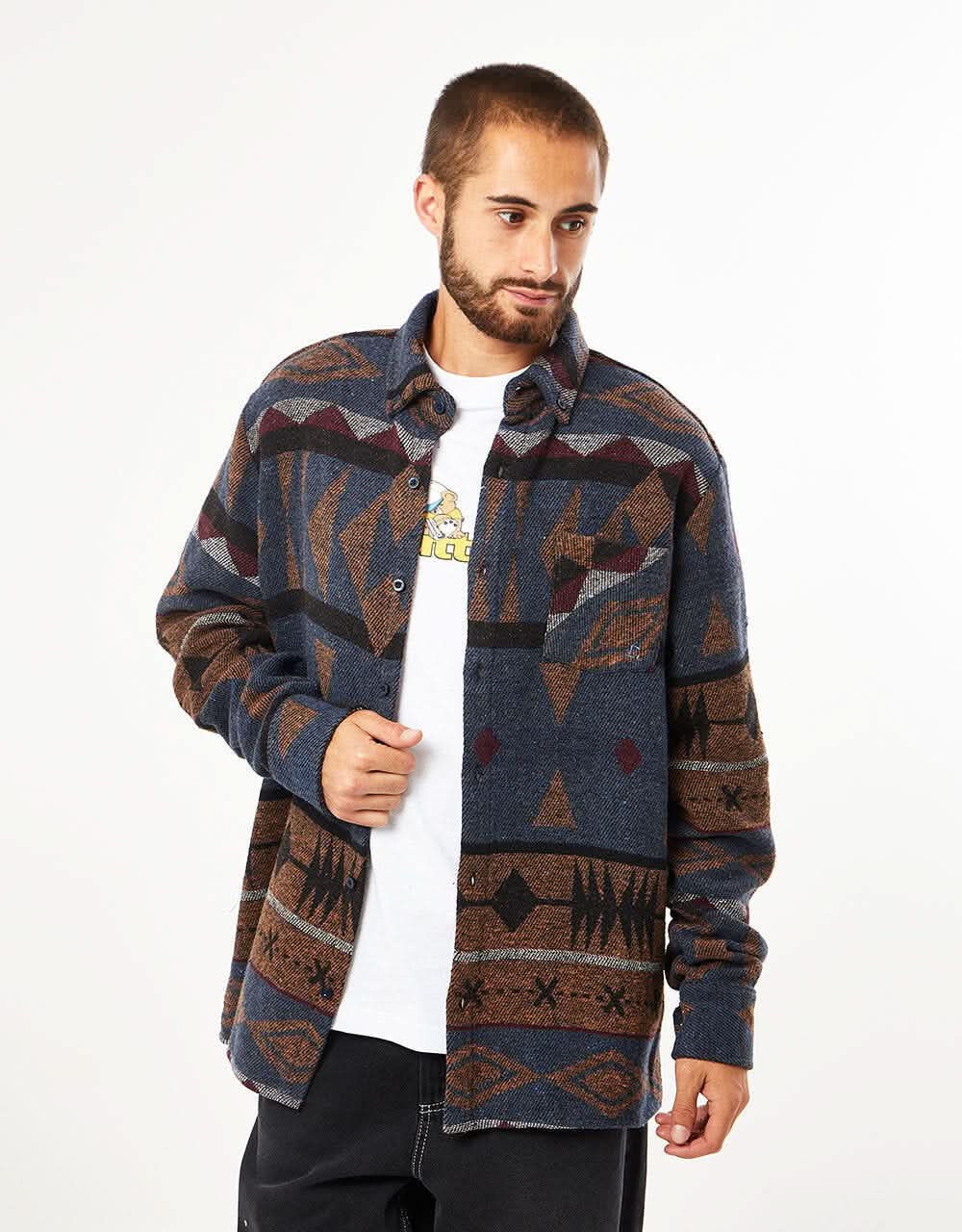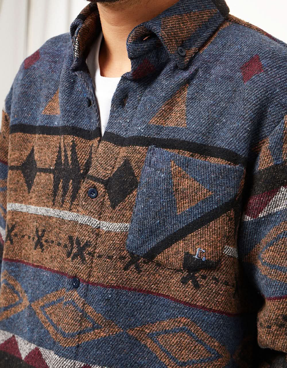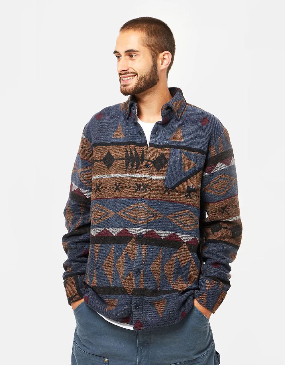 Route One Navajo Heavyweight Flannel Shirt - Imperial Blue/Brown