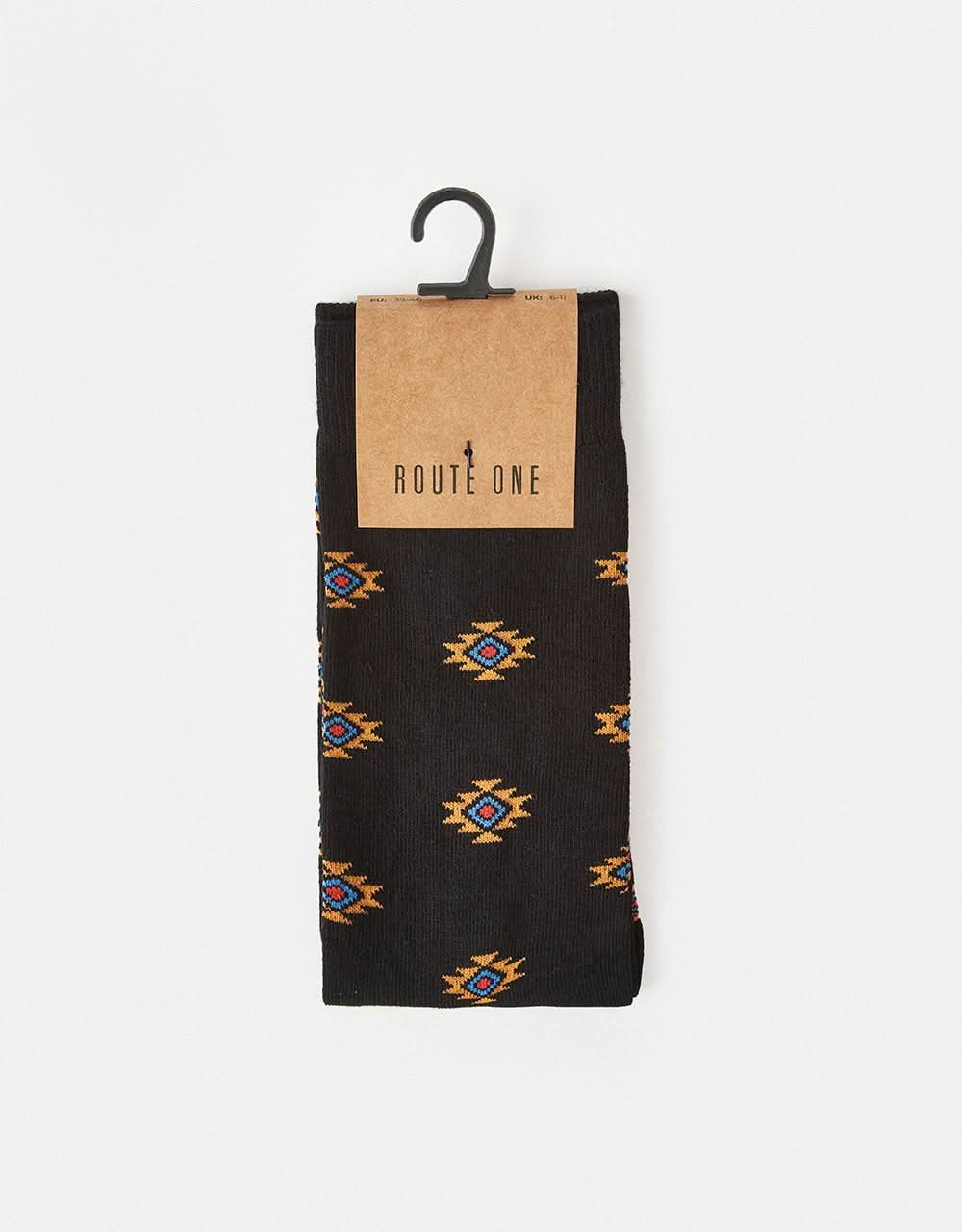 The Route One Navajo Socks in Black have been constructed from a cotton/polyamide blend with touch of elastane to give them that extra comfort and subtle stretch. With an all over jacquard design, these will look sick poking out the bottom of your jeans! At such an affordable price, you really can't go wrong.