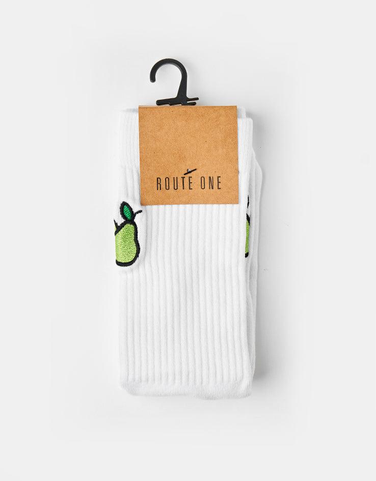 Route One Nice Pear Crew Socks - White