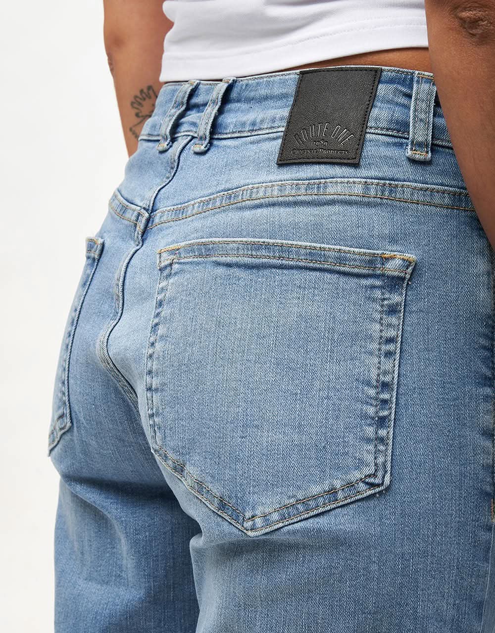 The Route One Nineties denim fit true to size, however if you are on the cusp of two sizes we suggest sizing up. They sit firmly between our established Relaxed and Baggy options, with a slightly roomier cut than its Relaxed counterpart. Our denim contains a standard 2% elastane which offers extra stretch, resulting in a super comfy wear without compromising the strength of the wash. The Nineties silhouette is crafted from our usual locally sourced denim and includes flattened rivets and chain stitched seams for long lasting strength and damage limitation.