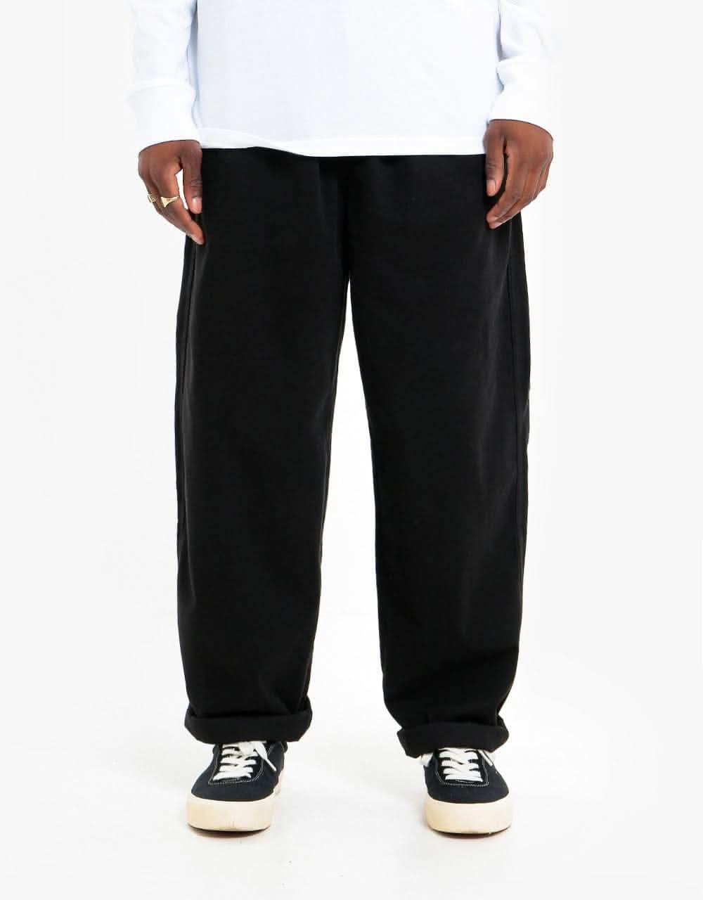 The Route One Organic Baggy Pants in Black are a loose-fitting, elasticated pant that has been constructed from 100% organic cotton, and dyed using a GOTS approved printing ink, meaning there are no harsh chemicals used. They feature a loose fit, two side-entry hip pockets and a drop-in pocket at the rear. These are everyday pants that are going to keep you comfortable and relaxed all day, whilst using sustainable materials to protect our planet.
