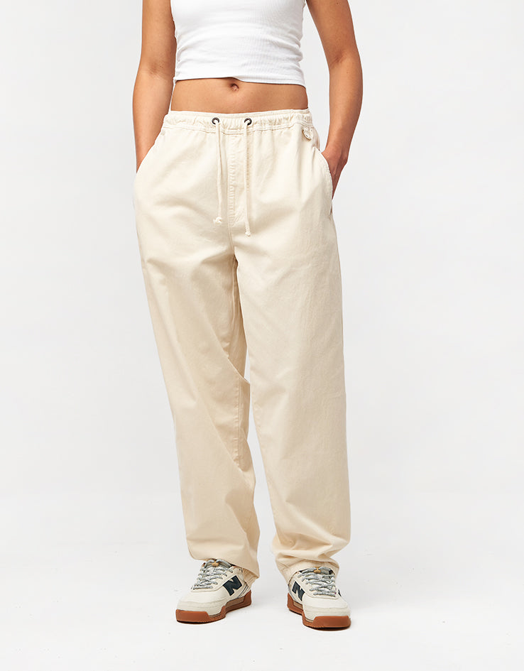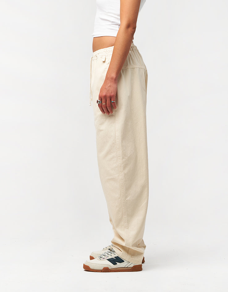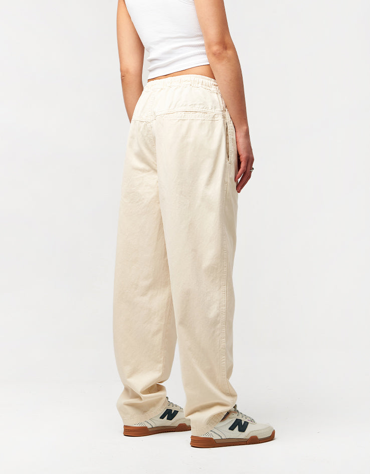 The Route One Organic Baggy Pants in Off White are a loose-fitting, elasticated pant that has been constructed from 100% organic cotton, and dyed using a GOTS approved printing ink, meaning there are no harsh chemicals used. They feature a loose fit, two side-entry hip pockets and a drop-in pocket at the rear. These are everyday pants that are going to keep you comfortable and relaxed all day, whilst using sustainable materials to protect our planet.
