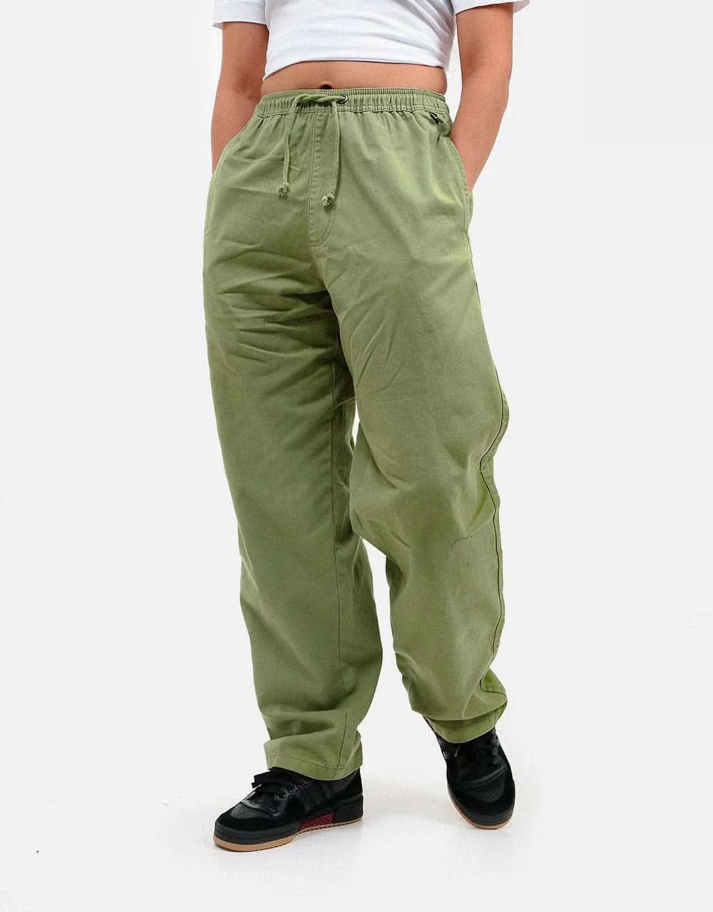 The Route One Organic Baggy Pants in Olive are a loose-fitting, elasticated pant that has been constructed from 100% organic cotton, and dyed using a GOTS approved printing ink, meaning there are no harsh chemicals used. They feature a loose fit, two side-entry hip pockets and a drop-in pocket at the rear. These are everyday pants that are going to keep you comfortable and relaxed all day, whilst using sustainable materials to protect our planet.