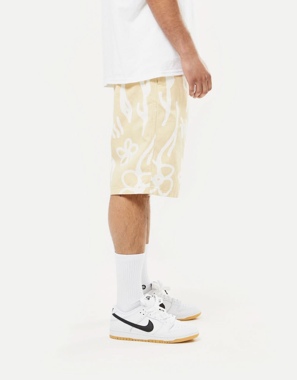 The short is made from a 100% Organic Cotton fabric and uses GOTS-certified vegan printing inks. The shorts feature hand pockets at the side seams, an elasticated waist with an adjustable drawcord, and come ina loose fit.