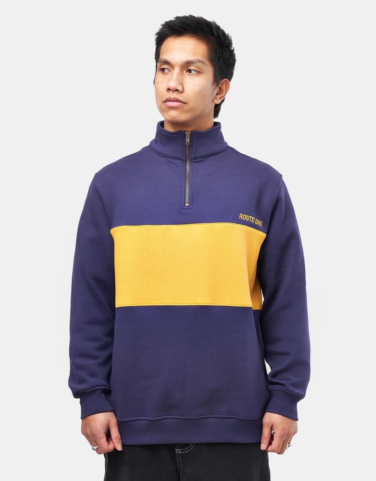 Route One Organic Blocked 1/4 Zip Sweat - Navy/Sunflower