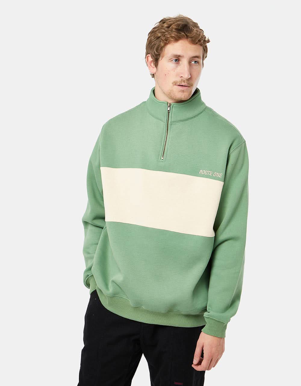 Route One Organic Blocked 1/4 Zip Sweat - Sage/IvoryCream