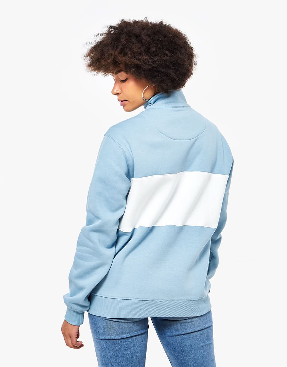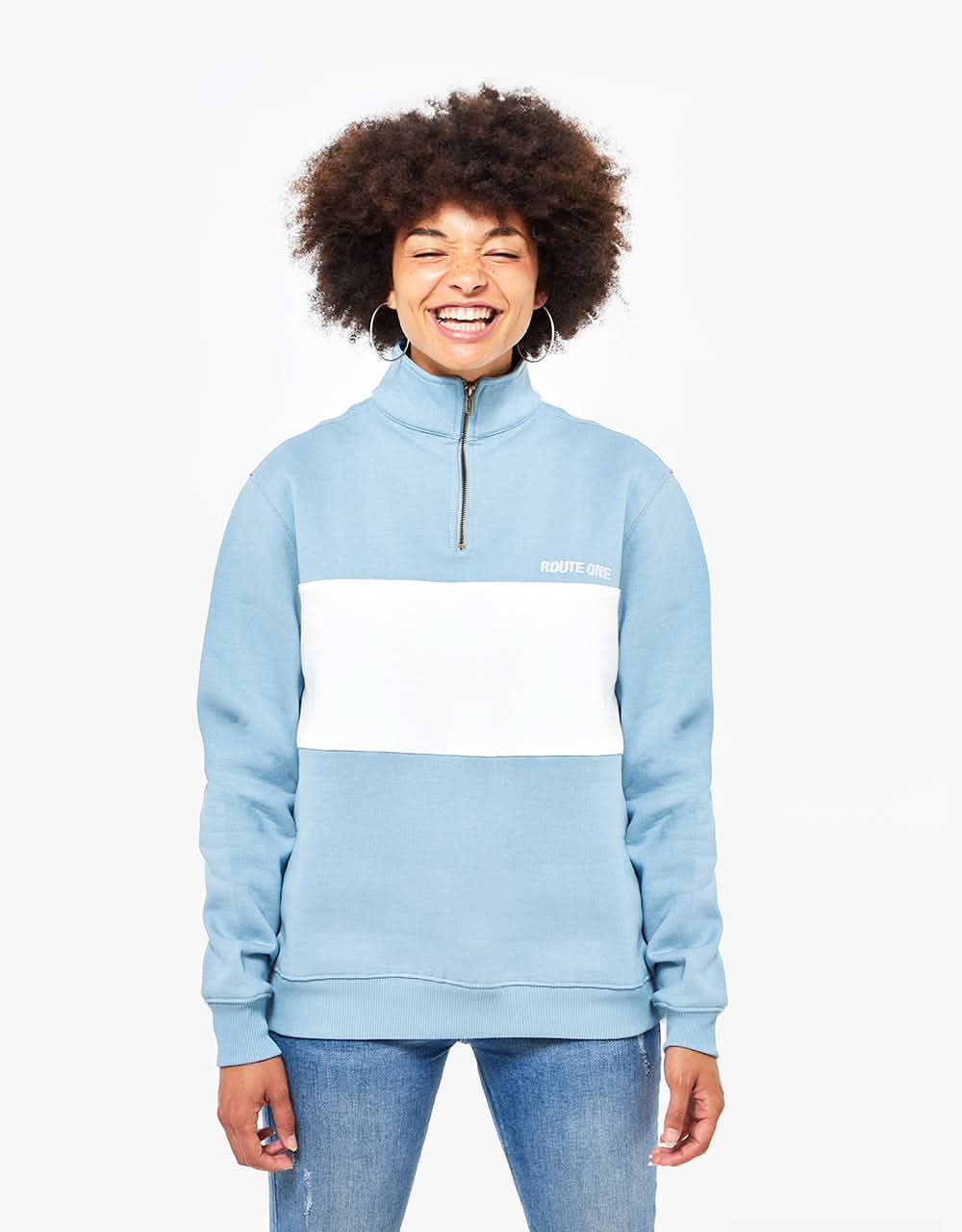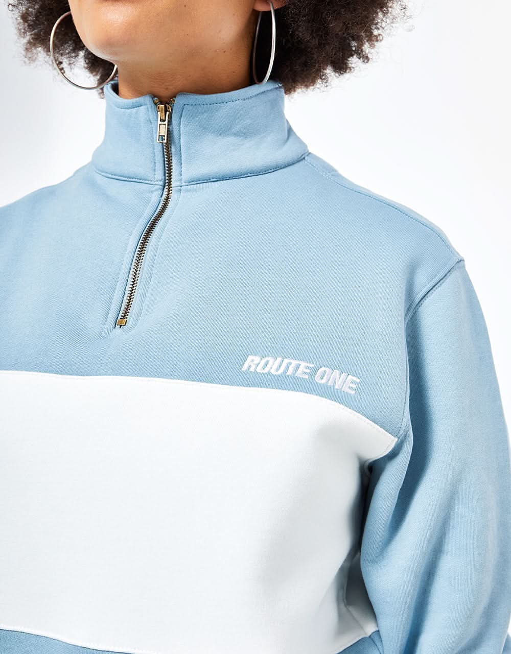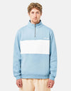 Route One Organic Blocked 1/4 Zip Sweat - Stone Blue/Stone