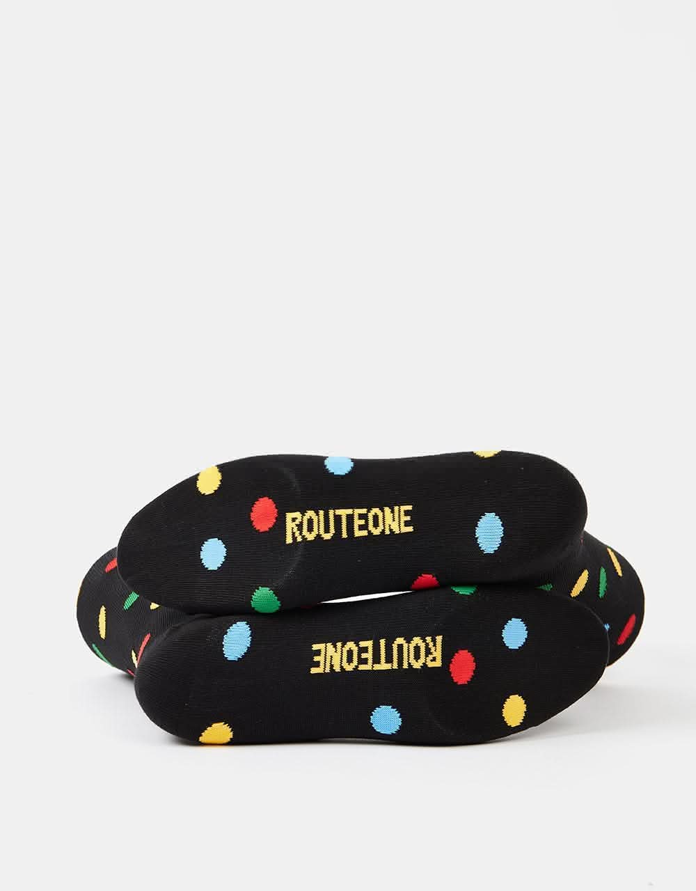 The Route One Polka Dot Socks in Black have been constructed from a cotton/polyamide blend with touch of elastane to give them that extra comfort and subtle stretch. With an all over jacquard polka dot design, these will look sick poking out the bottom of your jeans! At such an affordable price, you really can't go wrong.