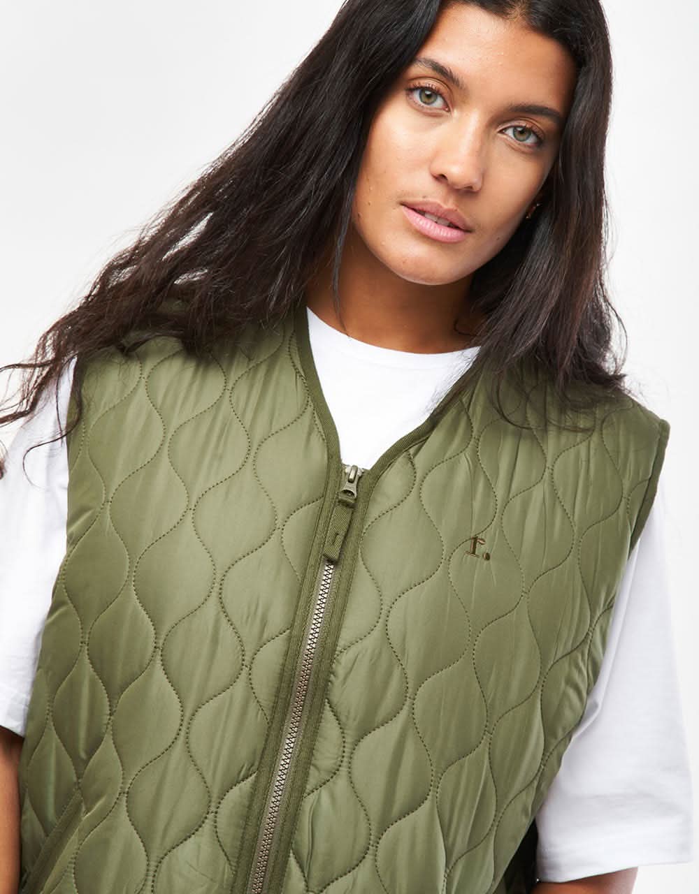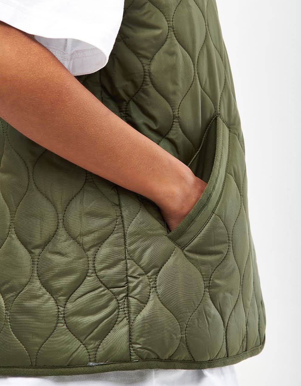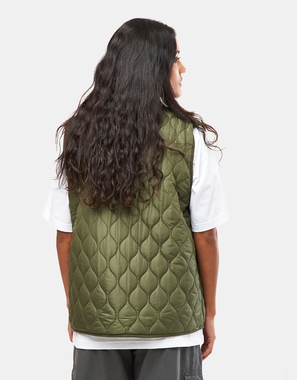 The Route One Quilted Liner in Olive is a polyester lightweight liner with a soft cream lining to keep you comfortable. Featuring a two way front zip and angled hand pockets lined with polar fleece.