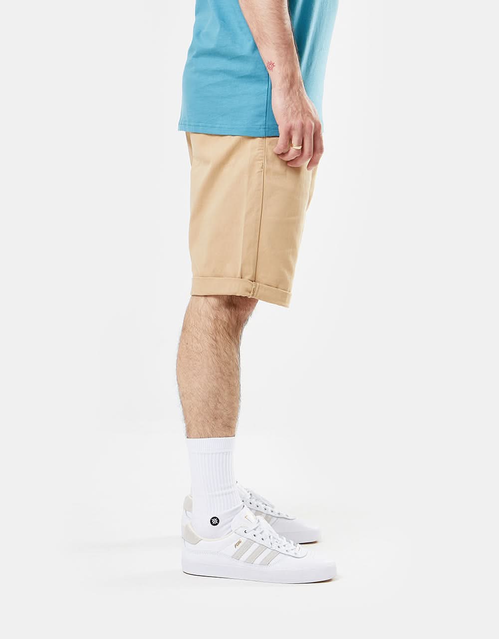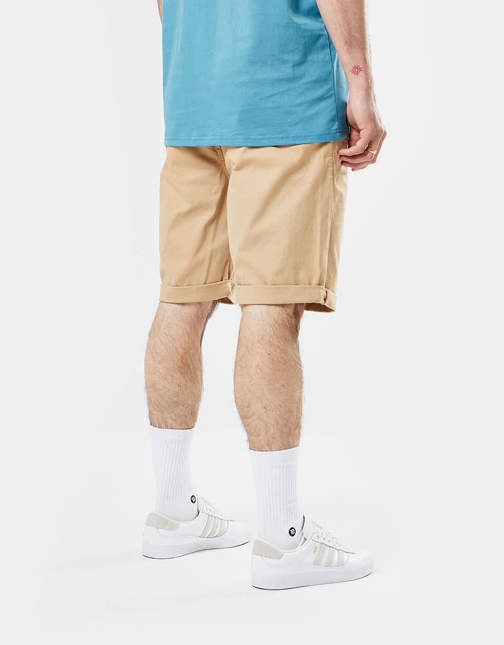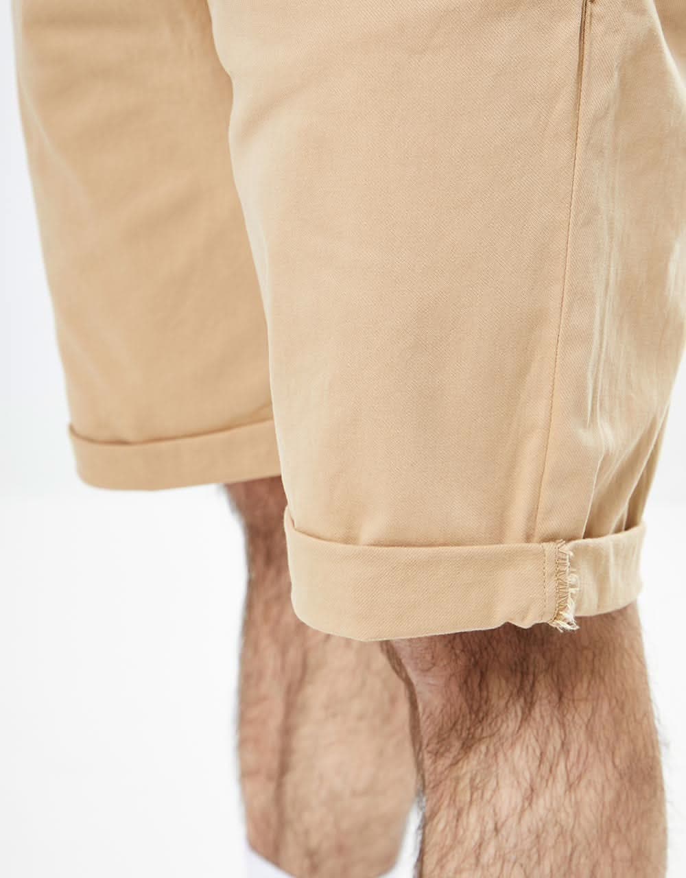 Following the success of our chino trousers range, we present the perfect chino short for the summer months, at an unbelievable price. In an all-over Khaki colourway, these shorts feature four large outer pockets, belt straps and a zip fly with button top. They are a slim fit and look great rolled up.
